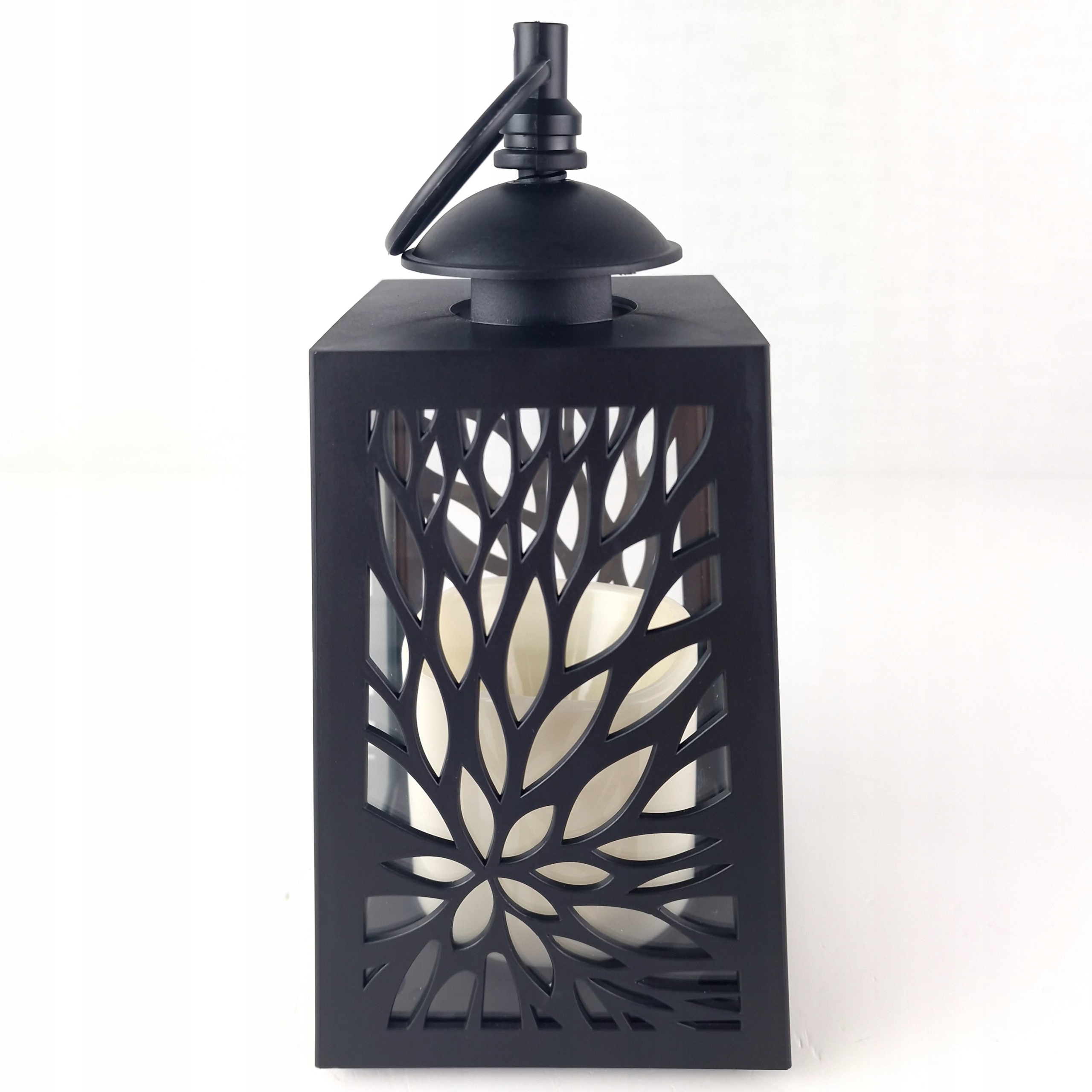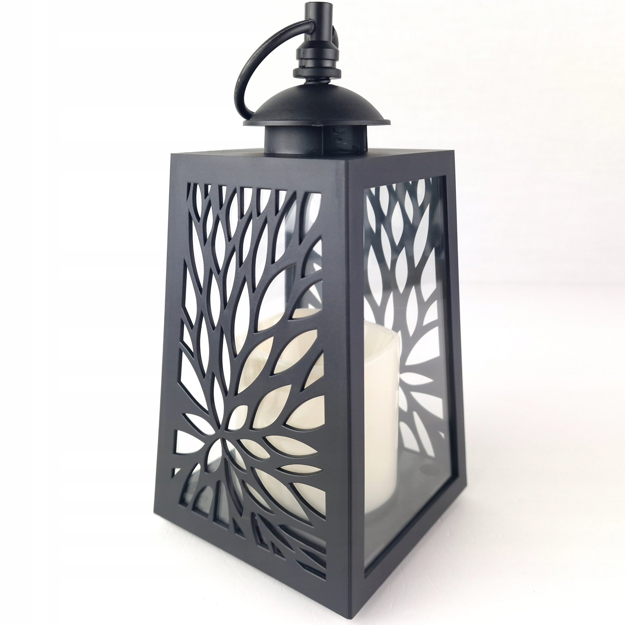LATARENKA LAMPION AŻUROWA ZE ŚWIECĄ LED ŚWIECA CZARNA NA BATERIE WKŁAD
