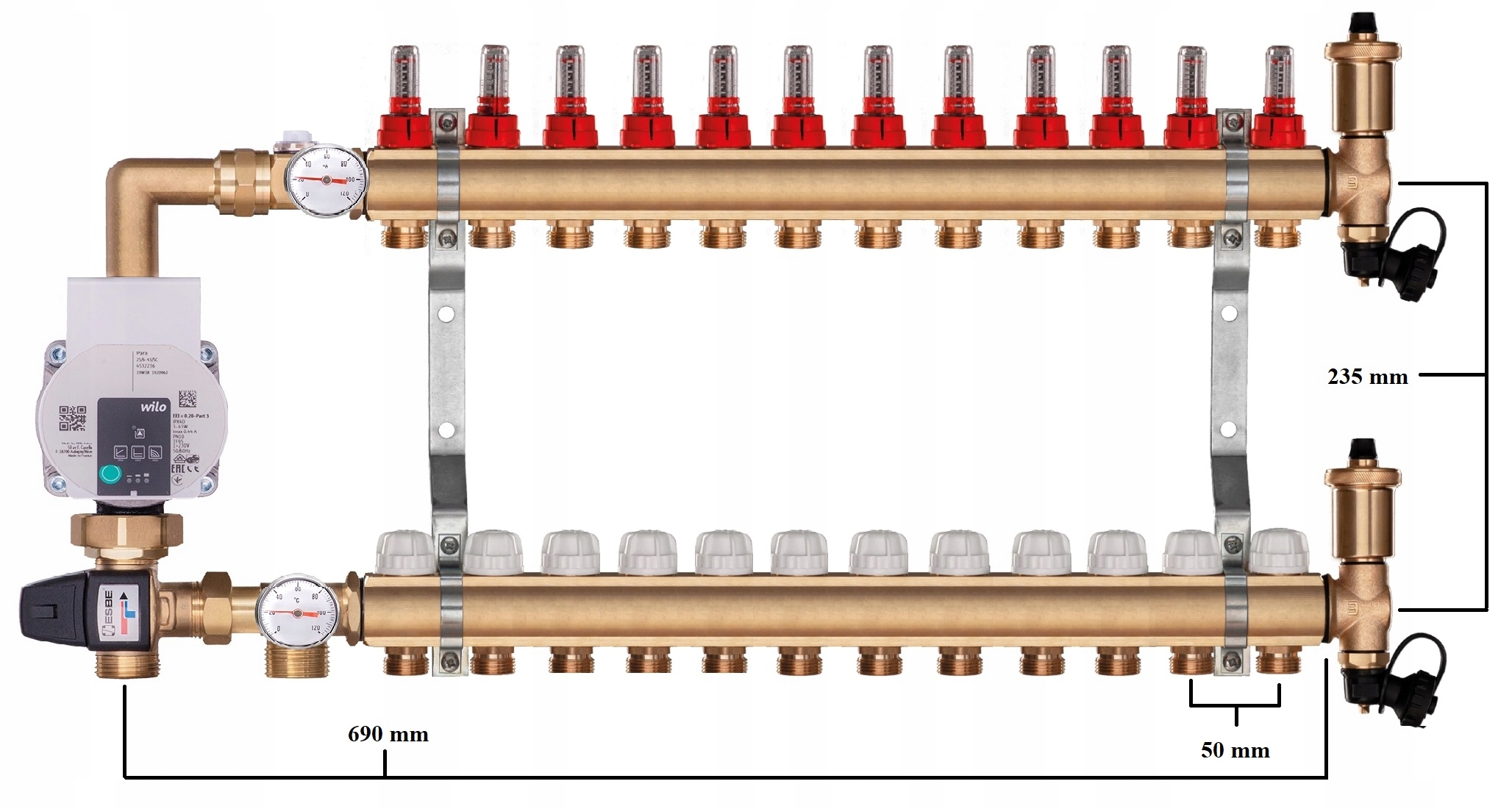 Повні латунні розблої 12 з групою насосів WILO + PEX -з'єднувачами + прихована коробка - польський виробник