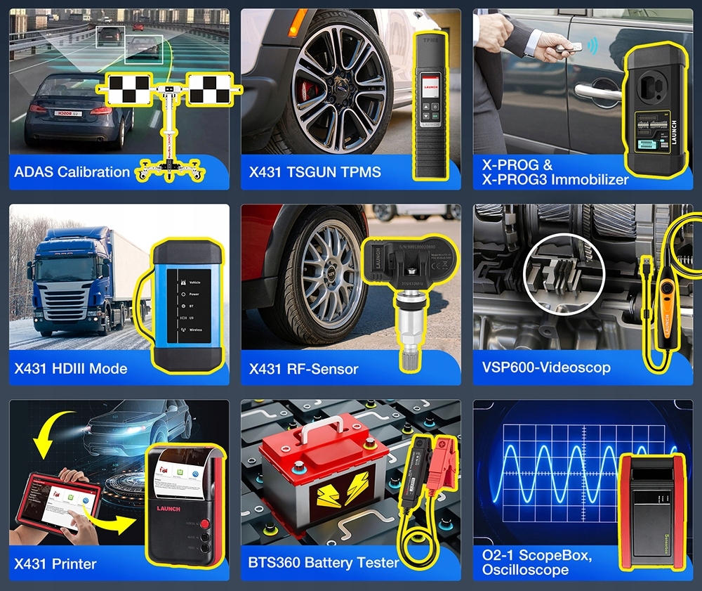 - Сумісність з Volkswagen / Skoda / Seat / BMW / GM / Ford / Opel / Mazda / Fiat / Honda / Nissan / Hyundai / Kia / Subaru тощо: програмування компонентів.