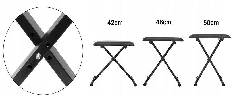 Легке та зручне крісло з сидінням з високоякісної екошкіри. Ідеально підходить для піаніно, клавіатури або навіть під час гри на гітарі.