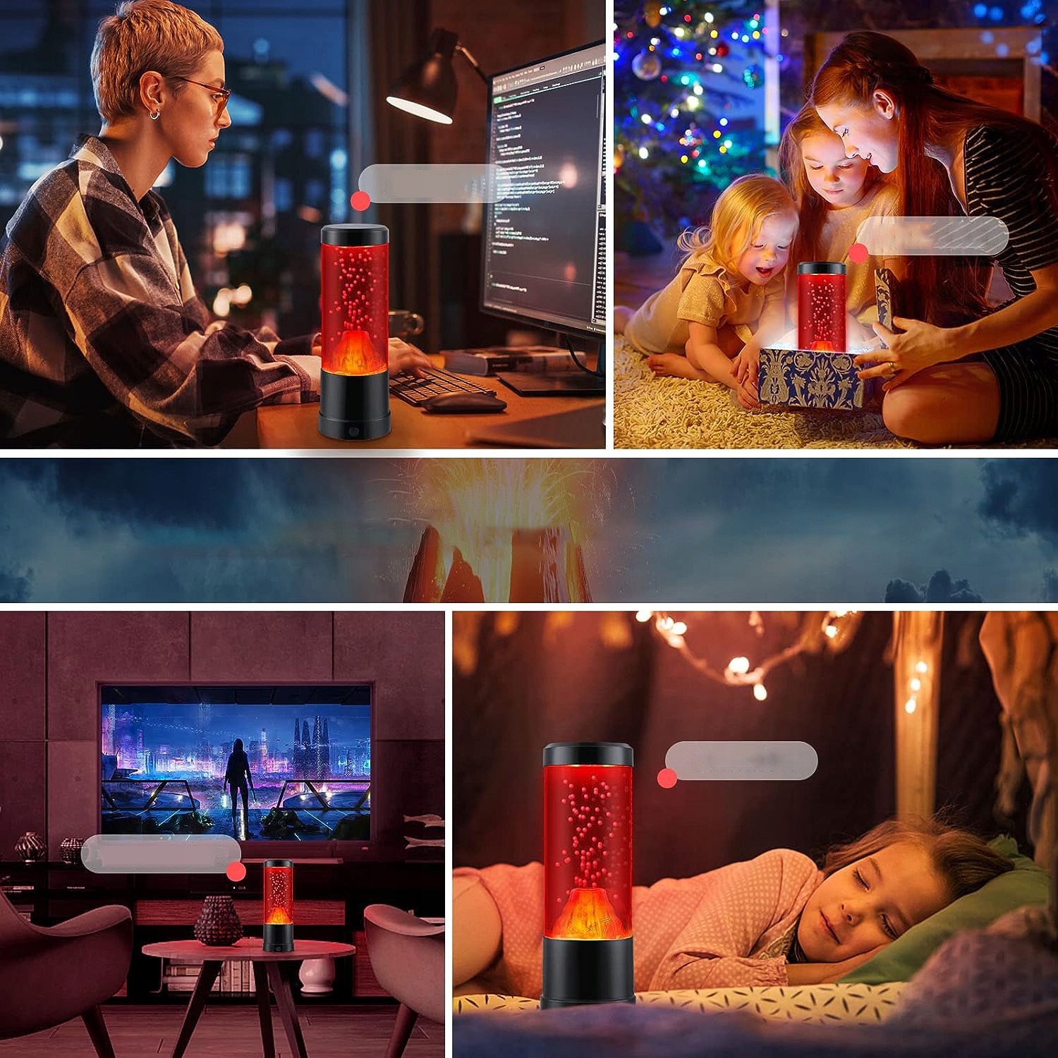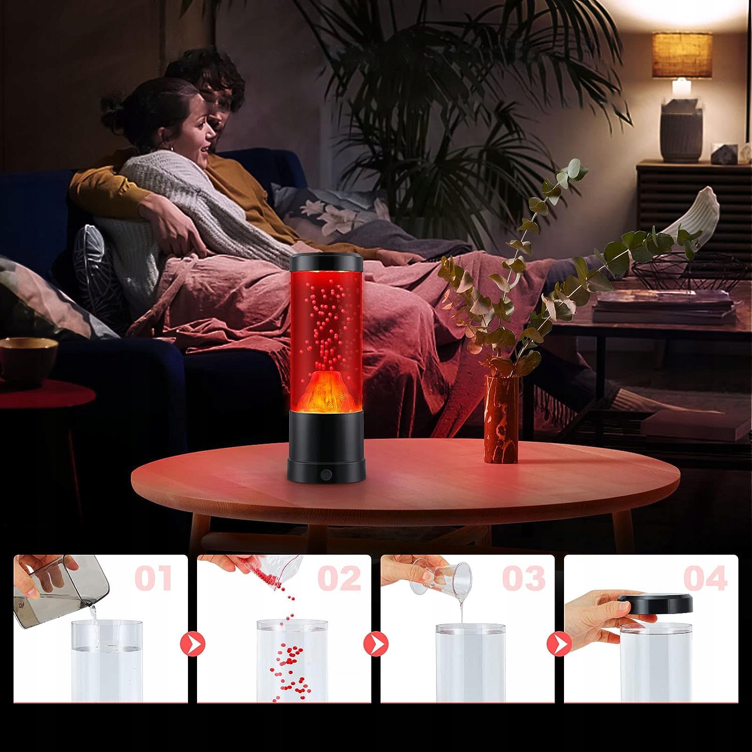 🌋 Червона лавова лампа настрою та червоні кульки, що піднімаються, чітко відтворюють сцену виверження вулкана.