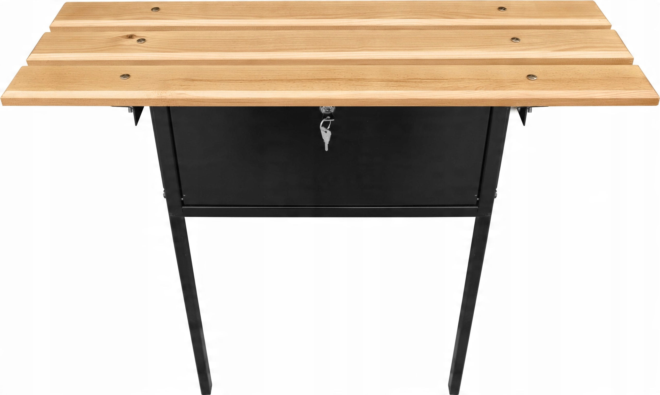 Металевий ящик, розташований під сидінням, також пофарбований порошковою фарбою чорного. Коробка має невеликі отвори, щоб у ній не збиралася вода.