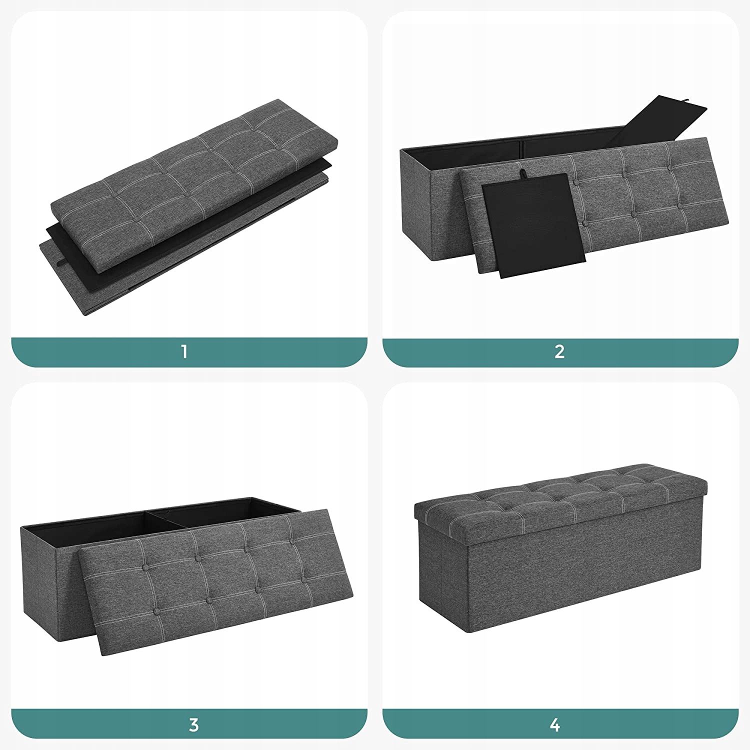 Нижню частину пуфа можна скласти та зберігати, коли він не використовується.