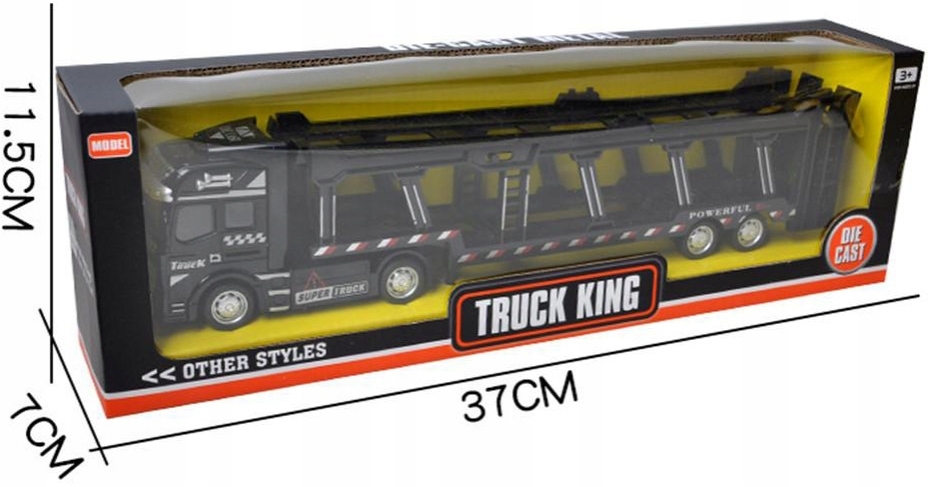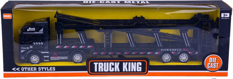 Евакуатор транспортер для перевезення легкових автомобілів виготовлений з металу з пластиковими елементами. Кабіна металева, а причіп пластиковий. На автомобілі є гумові шини та спеціальний пандус для улюблених автомобілів.