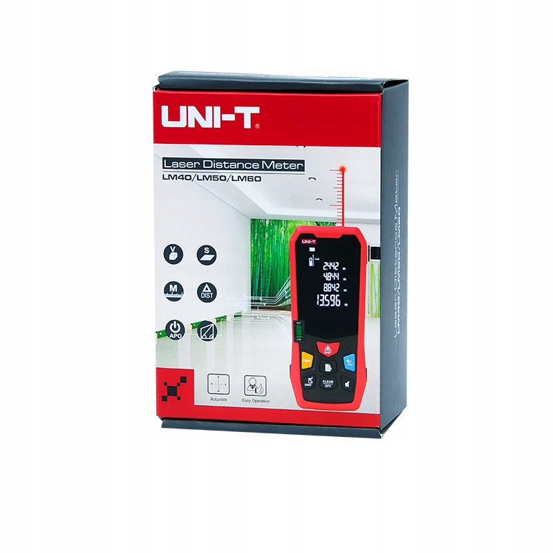 Лазерний далекомір від компанії-лідера ринку UNI-T. Лазерний вимірювач дозволяє дуже точно і надзвичайно швидко вимірювати відстані та обчислювати об'єм і площу поверхні об'єктів. Операція надзвичайно проста: для вимірювання відстані ми наводимо лазерну указку на ціль, натискаємо кнопку і показуємо результат. Інверсне відображення: білі символи на чорному тлі забезпечують високий контраст.