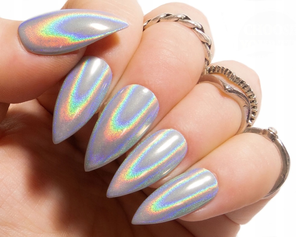 Просто втирайте його у свій улюблений колір гібридного лаку, гелю чи акрилу та насолоджуйтесь надзвичайним ефектом. Для отримання ефекту голографічної поверхні дуже ретельно і міцно втирайте пил в дисперсійний шар гібридного лаку. Пил слід втирати до досягнення бажаного ефекту. Якщо потерти пил занадто коротко, ви отримаєте ефект звичайного срібного пилу.