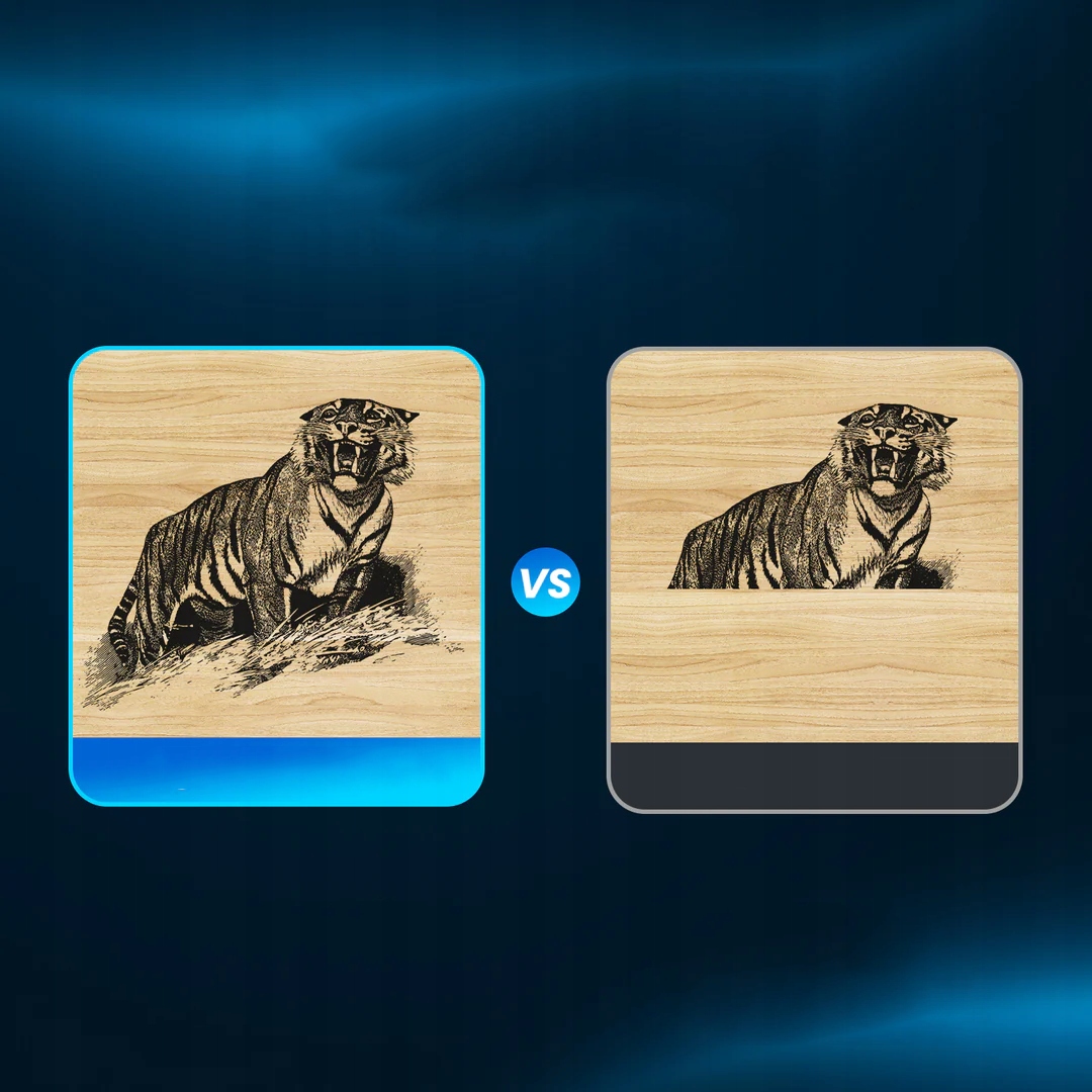 Завдяки найсучаснішій шестиядерній лазерній технології, лазер B1 20 Вт має потужну оптичну вихідну потужність 20-24 Вт, один із найпотужніших доступних сьогодні діодних лазерів і, отже, значно вищу потужність різання. Лазер B1 20W може різати сосну товщиною 15 мм, чорний акрил 8 мм і навіть нержавіючу сталь 0,1 мм за один прохід, липу 20 мм і чорний акрил 35 мм за кілька проходів.