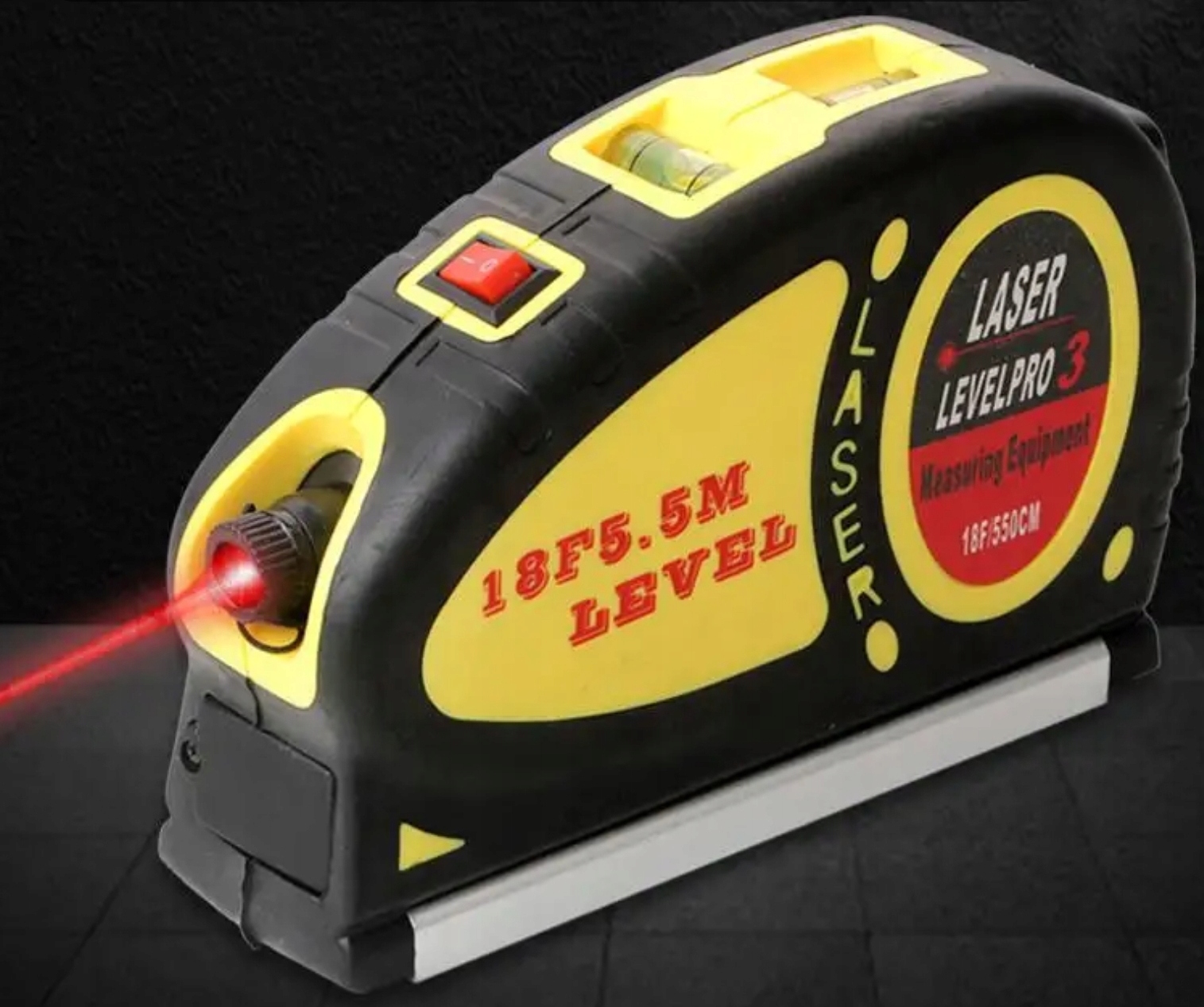 - ВБУДУВАНИЙ ВИМІРНИК – рівень має вбудовану висувну мірку довжиною 550 см. Міра має дві шкали вимірювань - сантиметри/мм і фути/дюйми.