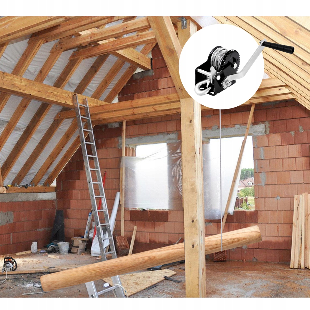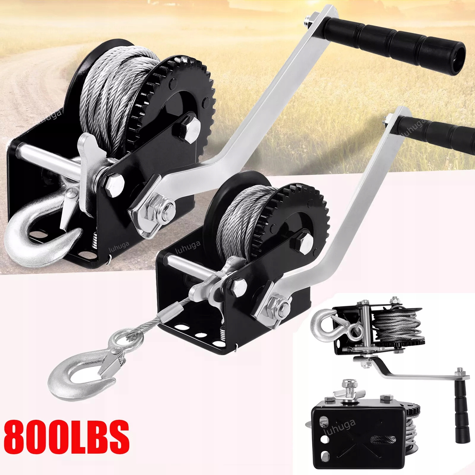 - тягова сила важкої лебідки зі сталевою рамою становить 800 фунтів, довжина мотузки 8 метрів і передавальне число 4:1/8:1.