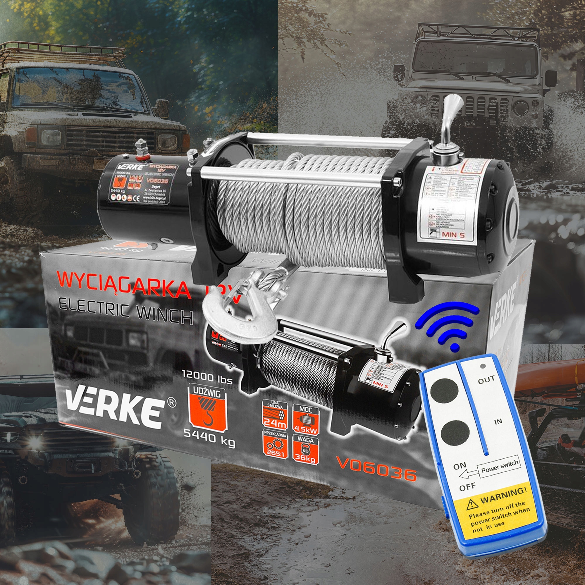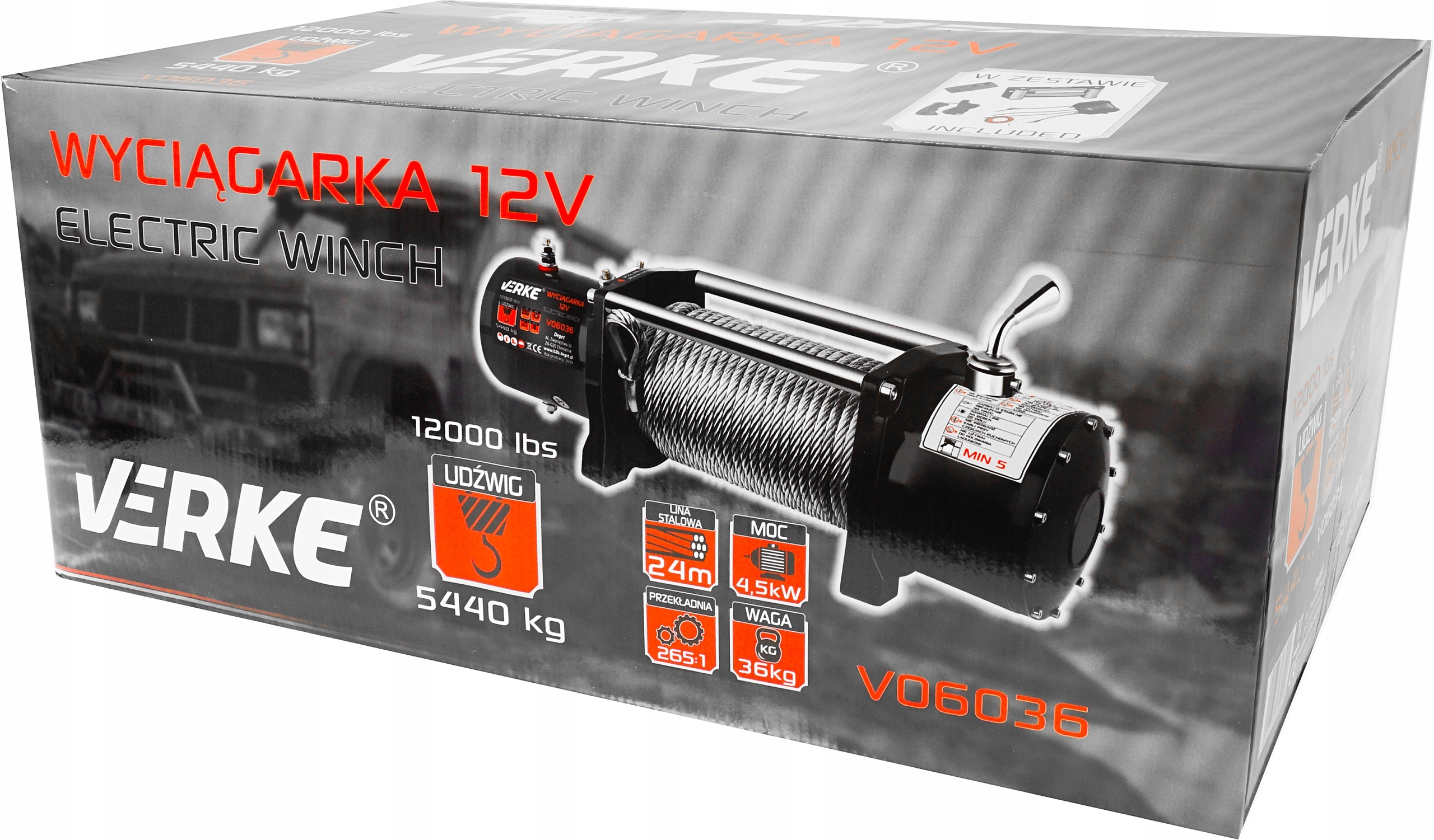 ЛЕБІДКА 12 В, 12000 ФУНТІВ, СТАЛЕВИЙ ТРАНС 24 м VERKE