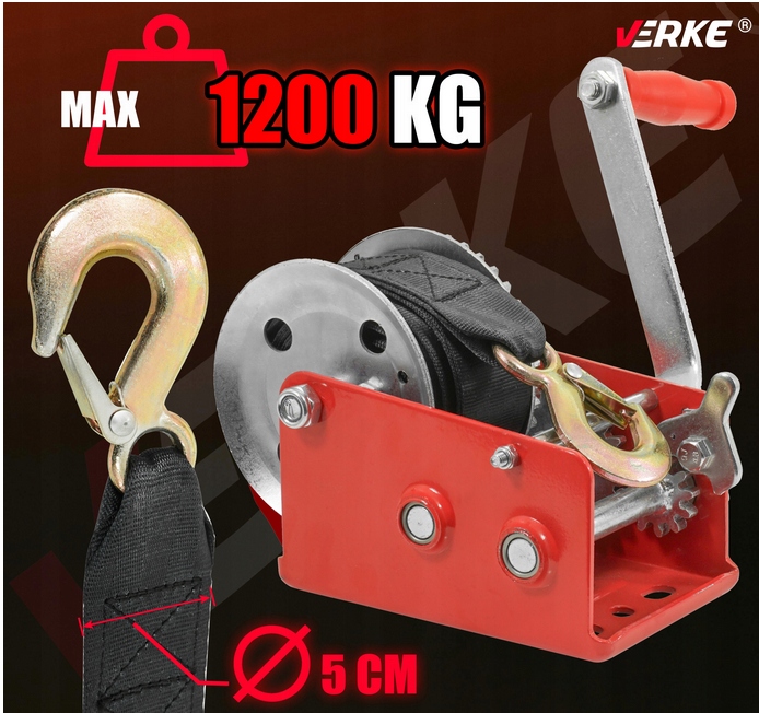CRANK WINCH 1200 KG, BELT 10 m VERKE