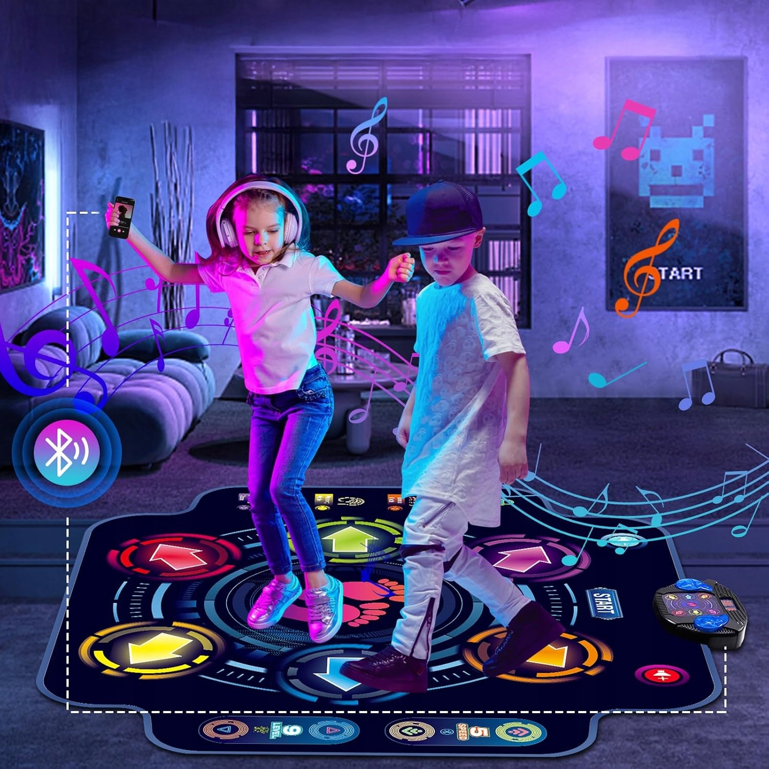 Хочете танцювати під власні пісні? 🎶 Просто підключіть килимок до свого телефону чи іншого пристрою Bluetooth через бездротове з’єднання та насолоджуйтеся своїм списком відтворення! Вбудований регулятор гучності дозволяє регулювати звук відповідно до ваших уподобань.