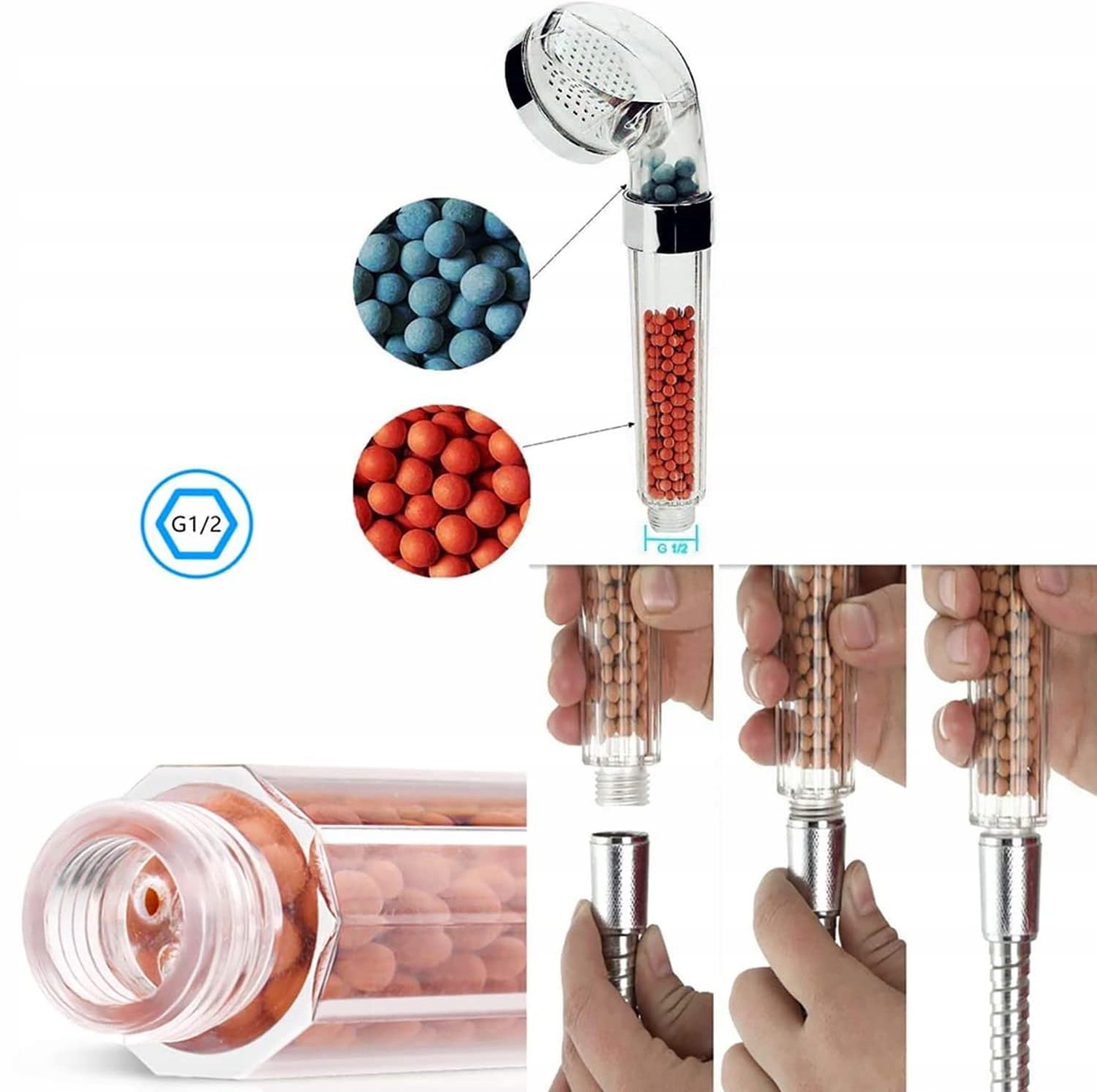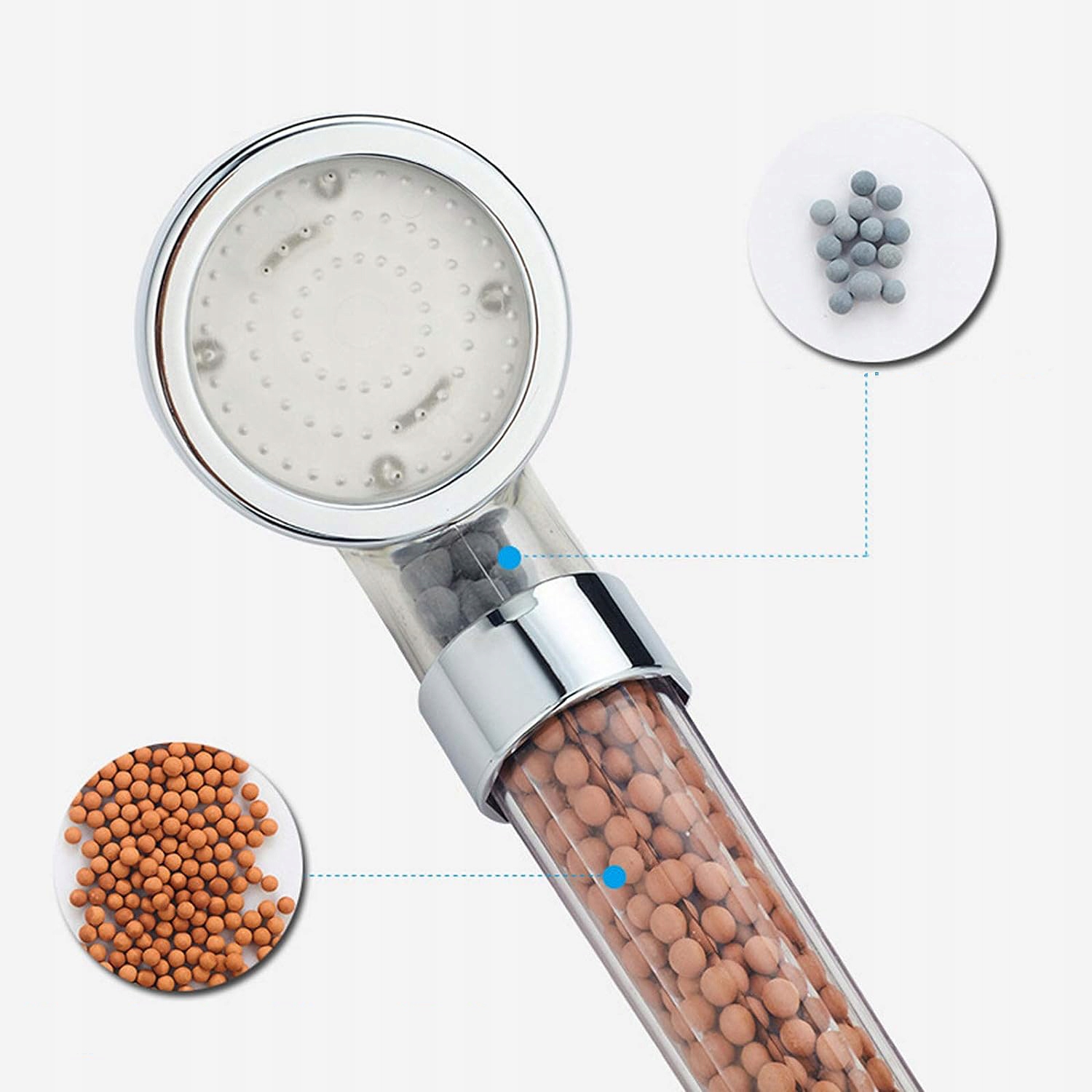 🛁🛁🛁【Екологічно чистий матеріал】:Водоощадна душова лійка з мінерального каменю з фільтром проти накипу з еко зручний матеріал: ABS-матеріал із прозорим дизайном і фільтром високої щільності, який можна зняти для легкого чищення.