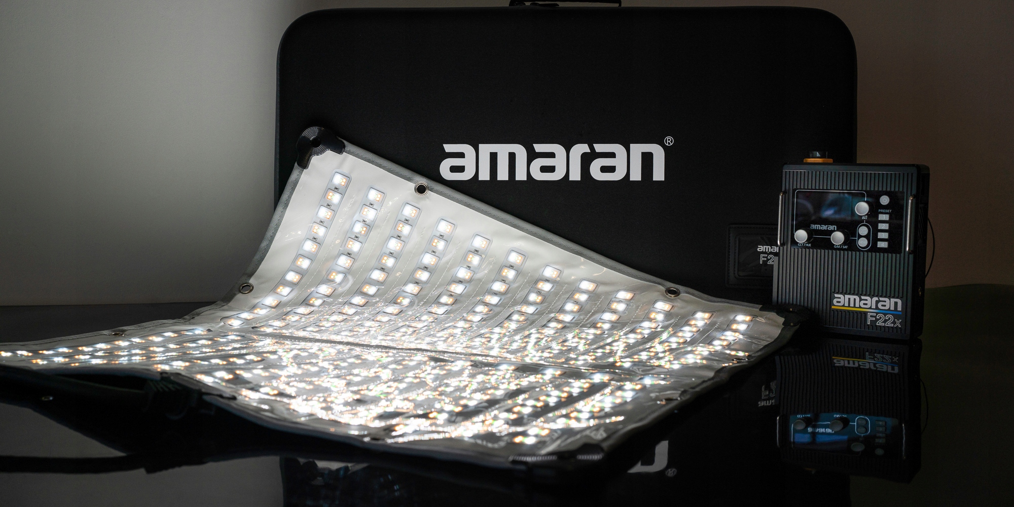Amaran F22x - V-mount — це гнучкий світловий килимок розміром 60 на 60 см, який є чудовою альтернативою важким світлодіодним панелям, укладеним у великі корпуси. Це ідеальний вибір для роботи в тісних і важкодоступних місцях. Пристрій має товщину 5 мм і важить всього 0,8 кг. Ви можете встановити їх у будь-якому місці за допомогою стрічки, липучок або застібок. Складний тримач X-Frame також дозволить використовувати модифікатори світла, що входять в комплект (софтбокс і сітка), а також з'єднати світильник з професійними штативами і тримачами «magic arm». Максимальна вихідна потужність лампи становить до 200 Вт. Пристрій пропонує регульовану колірну температуру (2500 K - 7500 K) і набір із 9 попередньо встановлених спецефектів.