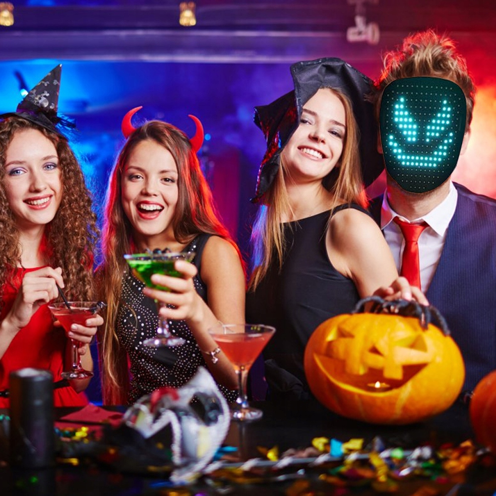 1. Покажіть свою індивідуальність: цю маску на Хелловін можна перемикати в режим відображення відповідно до вашого настрою, додасть вам атмосфери або блиску. Ви будете в центрі уваги всю ніч! Всі будуть дивитися на вас!