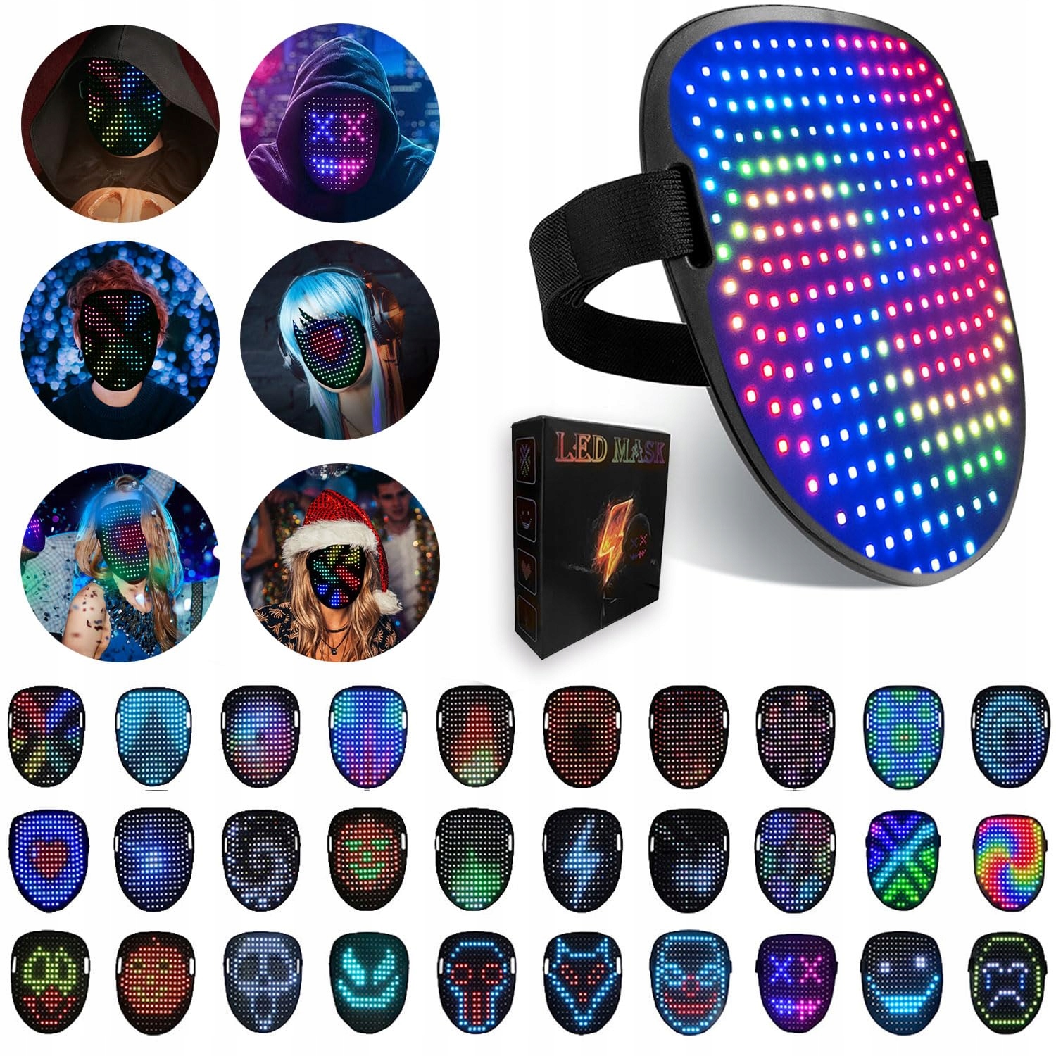 ✅ 50 візерунків (25 динамічних візерунків, 25 статичних візерунків): наша світлодіодна маска відображає вражаючі 50 візерунків, і ви можете легко перемикатися між режимами динамічного відображення відповідно до свого настрою та події. Будь то день народження, Хеллоуїн, Різдво, рейв чи фестиваль електронної музики, ця світлова маска ідеально підходить для будь-якого випадку та зробить вас центром уваги.