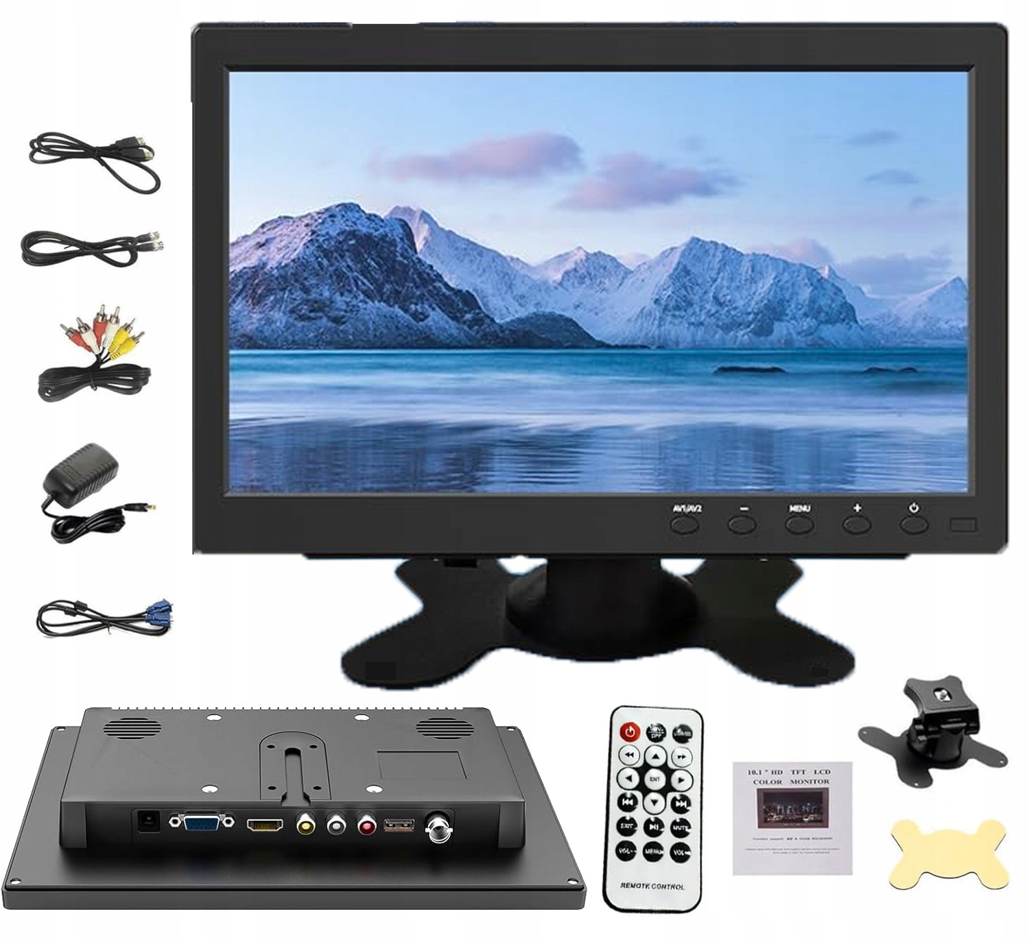 LED МОНІТОР 10,1 ДЮЙМОВ HD З HDMI VGA AV BN 12V LCD ЕКРАН ЧОРНИЙ З ПУЛЬТОМ