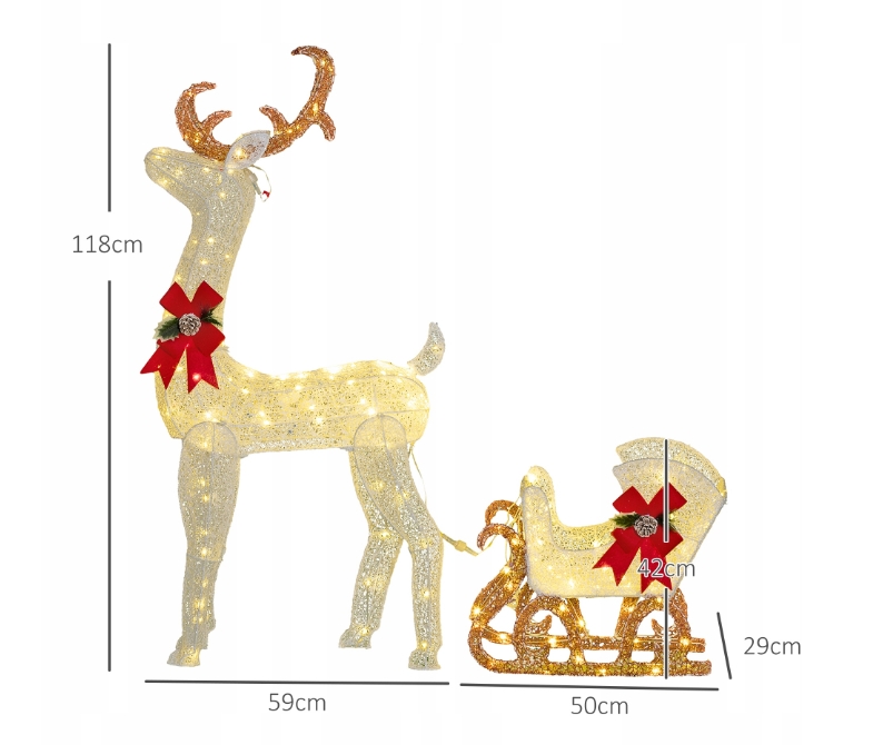 LED RENIFER I SANIE DEKORACJA ŚWIĄTECZNA 170 ŚWIATEŁEK 50 x 29 x 42 cm