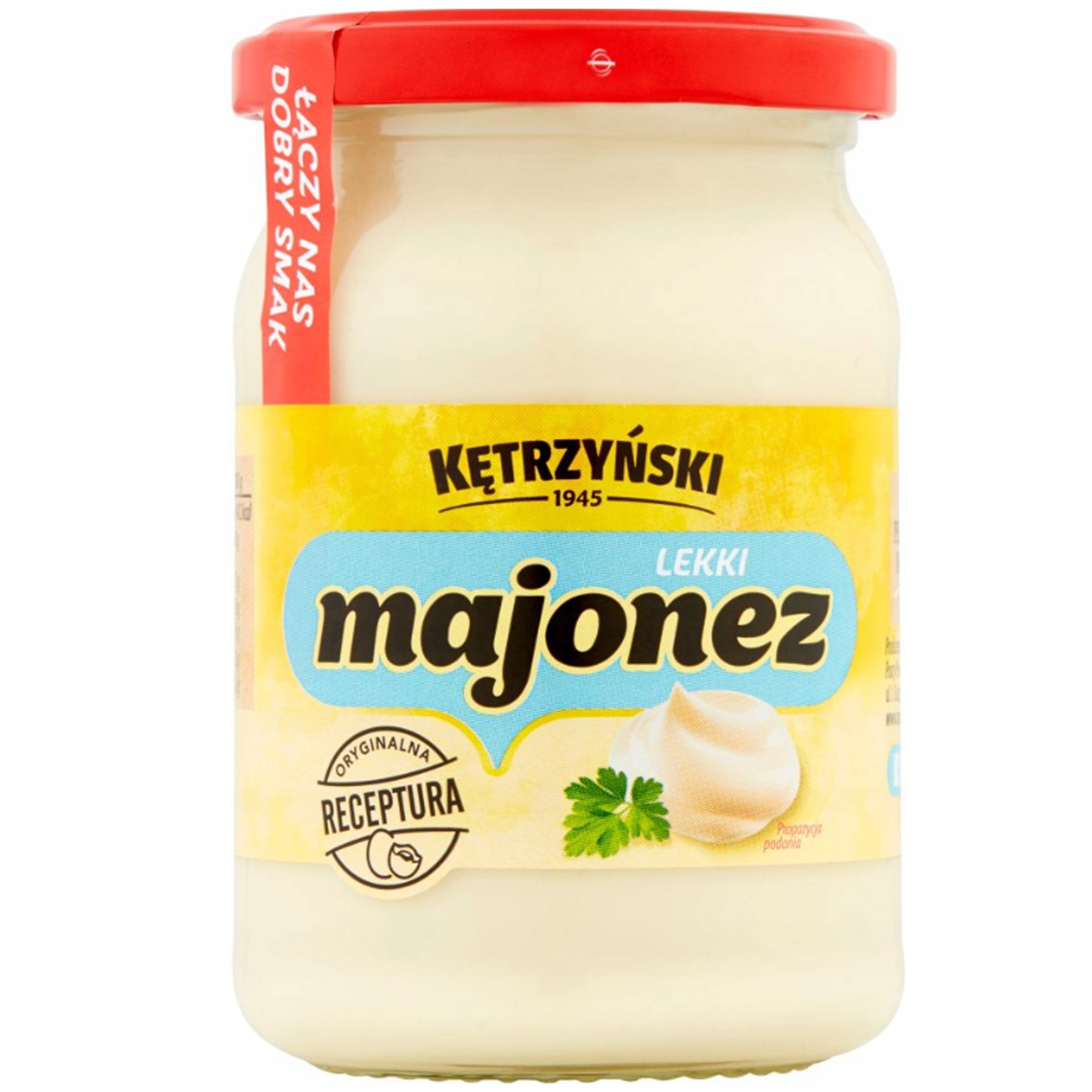 Він делікатний, містить додавання йогурту , має зменшений вміст жиру . Це чудове доповнення до низьких закусок , салатів, соусів . Завдяки цьому ви все ще можете насолоджуватися улюбленим смаком, не турбуючись про свою фігуру. Він не тільки підкреслює значення страв, але й додає енергії в дію. не містить глютену . Xanthanowa), яєчні жовтки 1,6%, пудра йогурту (містить молоко), сіль, консерванти: сорбат калію, бензоат натрію