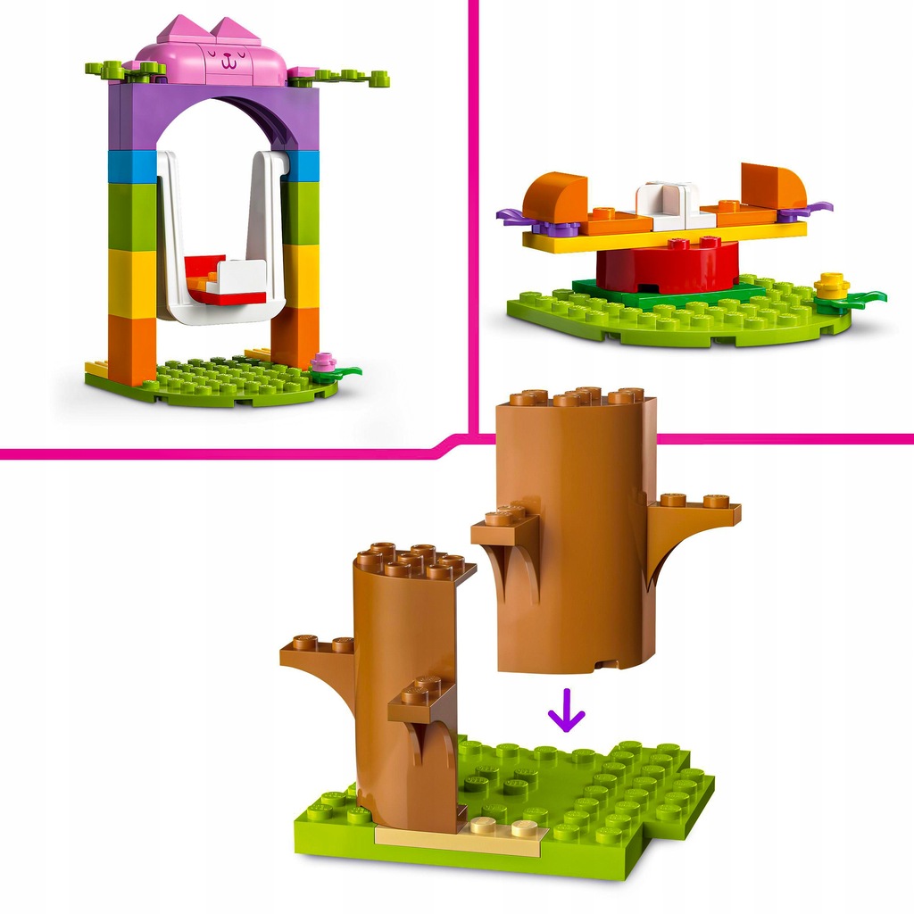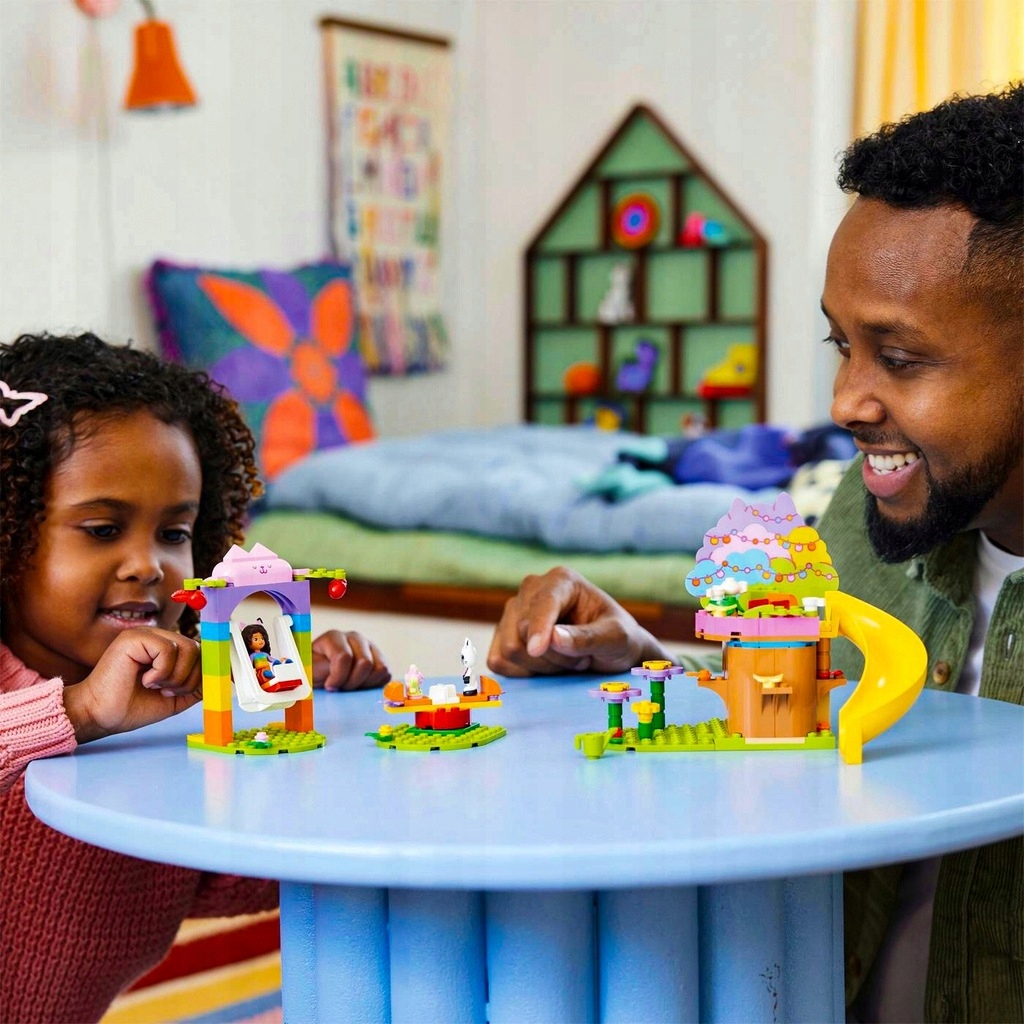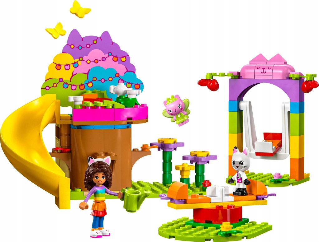Габі, Кітті Млинець і Ворожка з популярного телесеріалу п'ють чай у будиночку на дереві, де Ворожка має ліжко та полуницю. Є також квіти для вирощування юних садівників, а також гірка, гойдалка та карусель. Такі аксесуари, як яблука, лійка, чайник, чашки та метелики надихають дітям бути уявними рольовими іграми. Включено повнокольорові інструкції на основі зображень, а цифровий додаток LEGO Builder містить інтуїтивно зрозумілі інструменти масштабування та обертання. Подібно до інших наборів LEGO для дітей віком від чотирьох років, набір містить велику початкову цеглинку, щоб одразу почати будувати розваги.