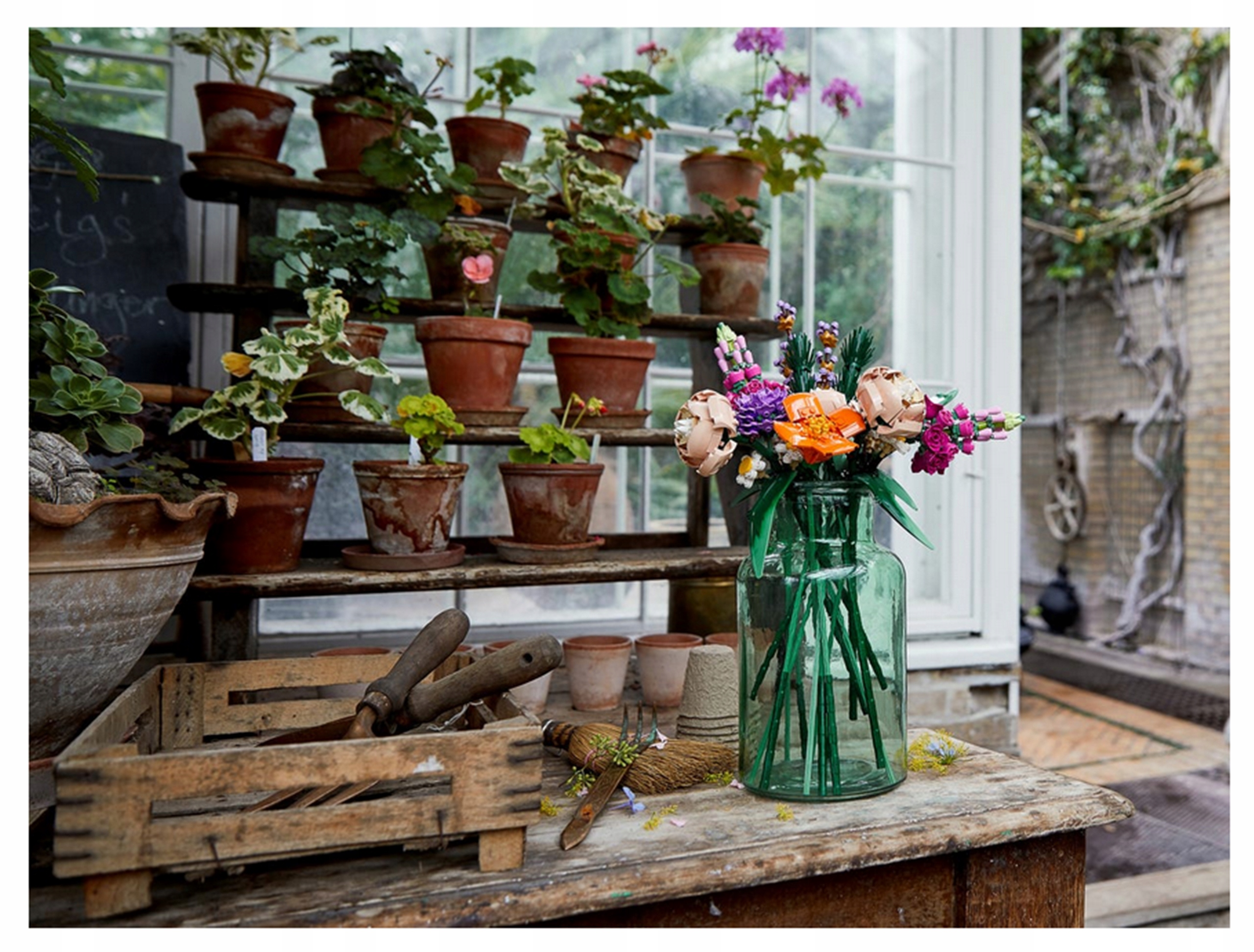 - Набір «Букет квітів» LEGO® є частиною ботанічної колекції LEGO. До складу моделей входять компоненти, виготовлені з рослинного пластику, отриманого з екологічно чистої цукрової тростини.