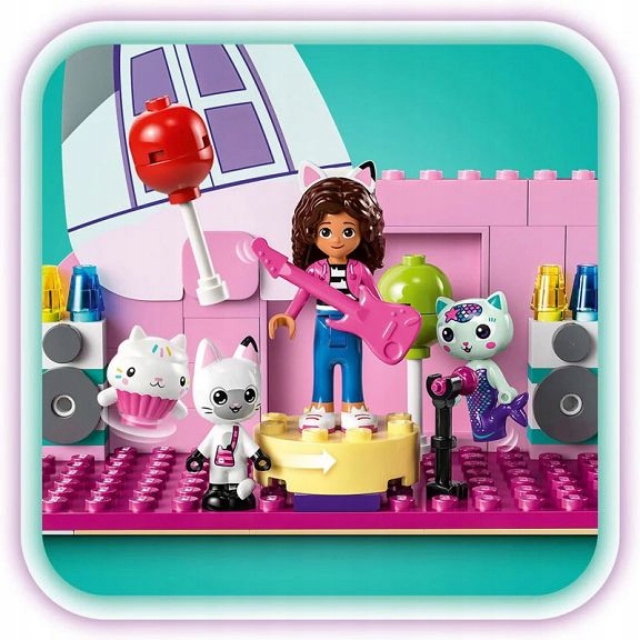 Багато можливостей, які можна знайти на кожному поверсі. Котячий будинок Габі має вісім барвистих кімнат, з’єднаних розсувним ліфтом. Кожна кімната наповнена крутими елементами. Діти можуть пекти на кухні, кататися з гірки в ігровій кімнаті, займатися творчістю в художній кімнаті, грати на фортепіано в музичній кімнаті, відпочивати у ванній кімнаті, подрімати в спальні або відправитися на дах на вечірку на вулиці. танцпол, що обертається. Діти переживають пригоди з чотирма популярними героями серіалу: Ґабі, Кітті Пандуш, Лакотеком і Русалкою. Інструкції з зображеннями включені, а програма LEGO Builder містить інтуїтивно зрозумілі інструменти масштабування та обертання. Подібно до інших наборів LEGO для дітей віком від чотирьох років, набір включає велику початкову цеглинку, щоб почати будувати весело відразу.