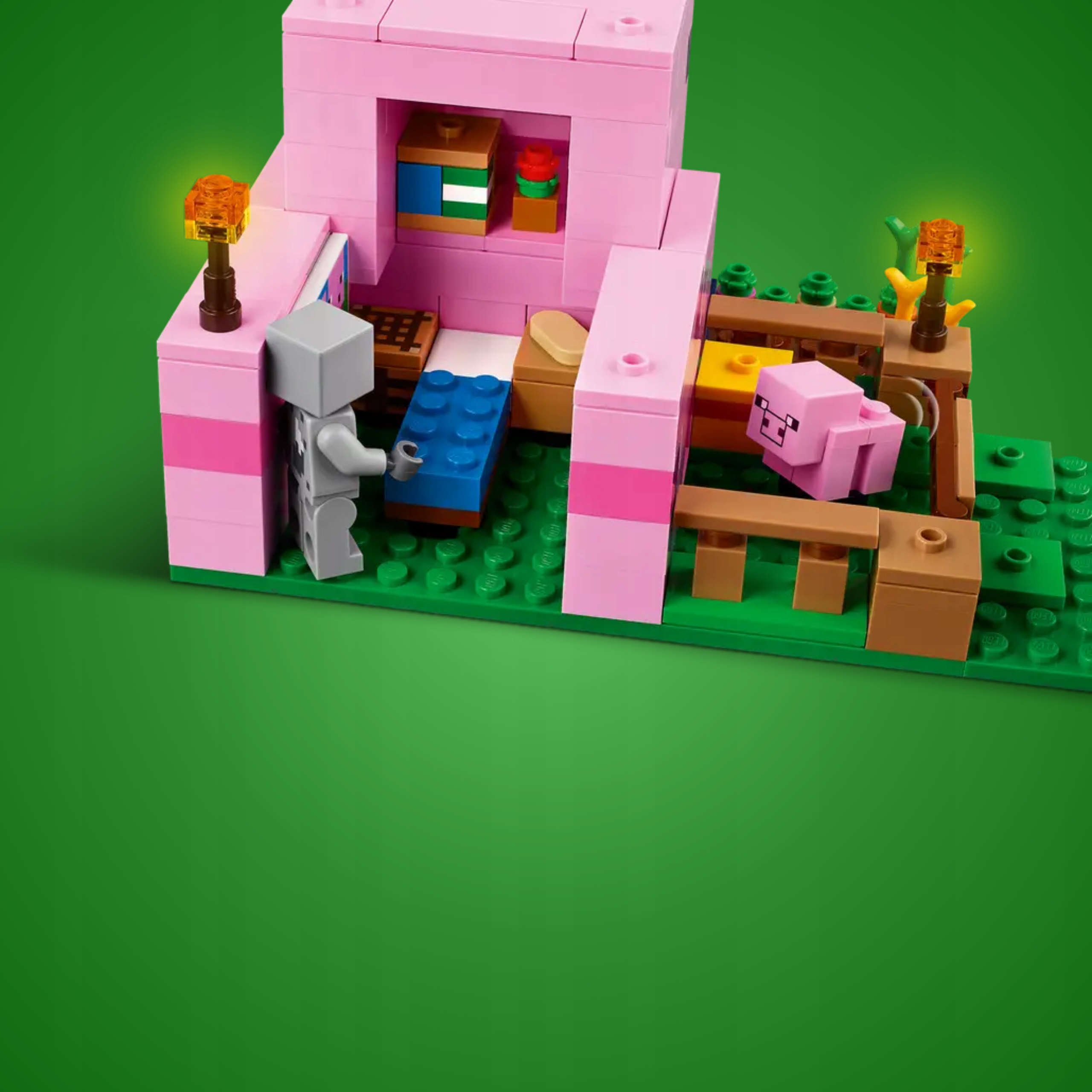 Набір LEGO® Minecraft Piglet House є ідеальною пропозицією для дітей, які люблять тварин, ферми та характерну атмосферу гри Minecraft.