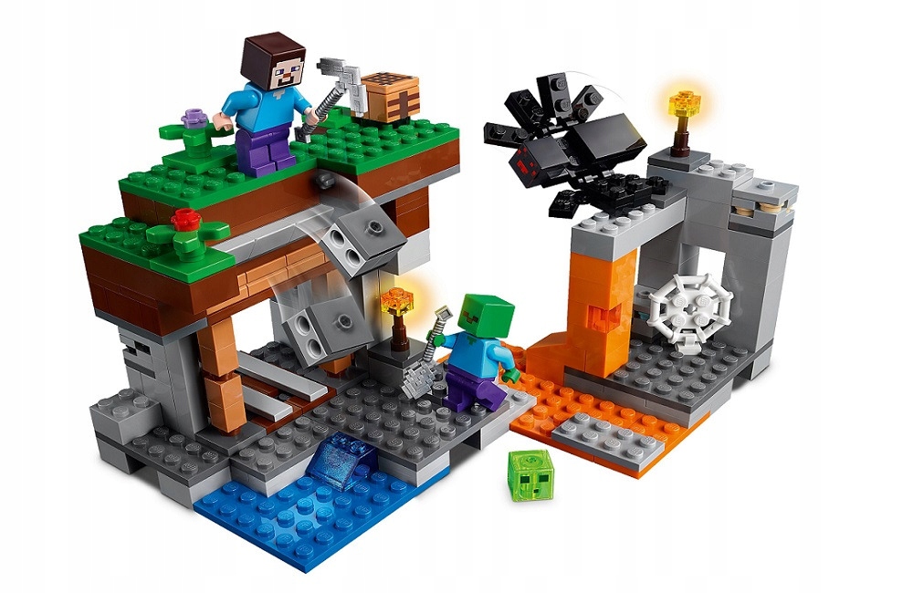 Набір включає не лише будівлі, а й багато чудово відтворених міні-фігурок Minecraft: Стіва, зомбі, павука та живого слизу. Крім того, щоб надати шахті реального розміру, є блоки, що імітують вугілля, залізо, алмаз і гравій.