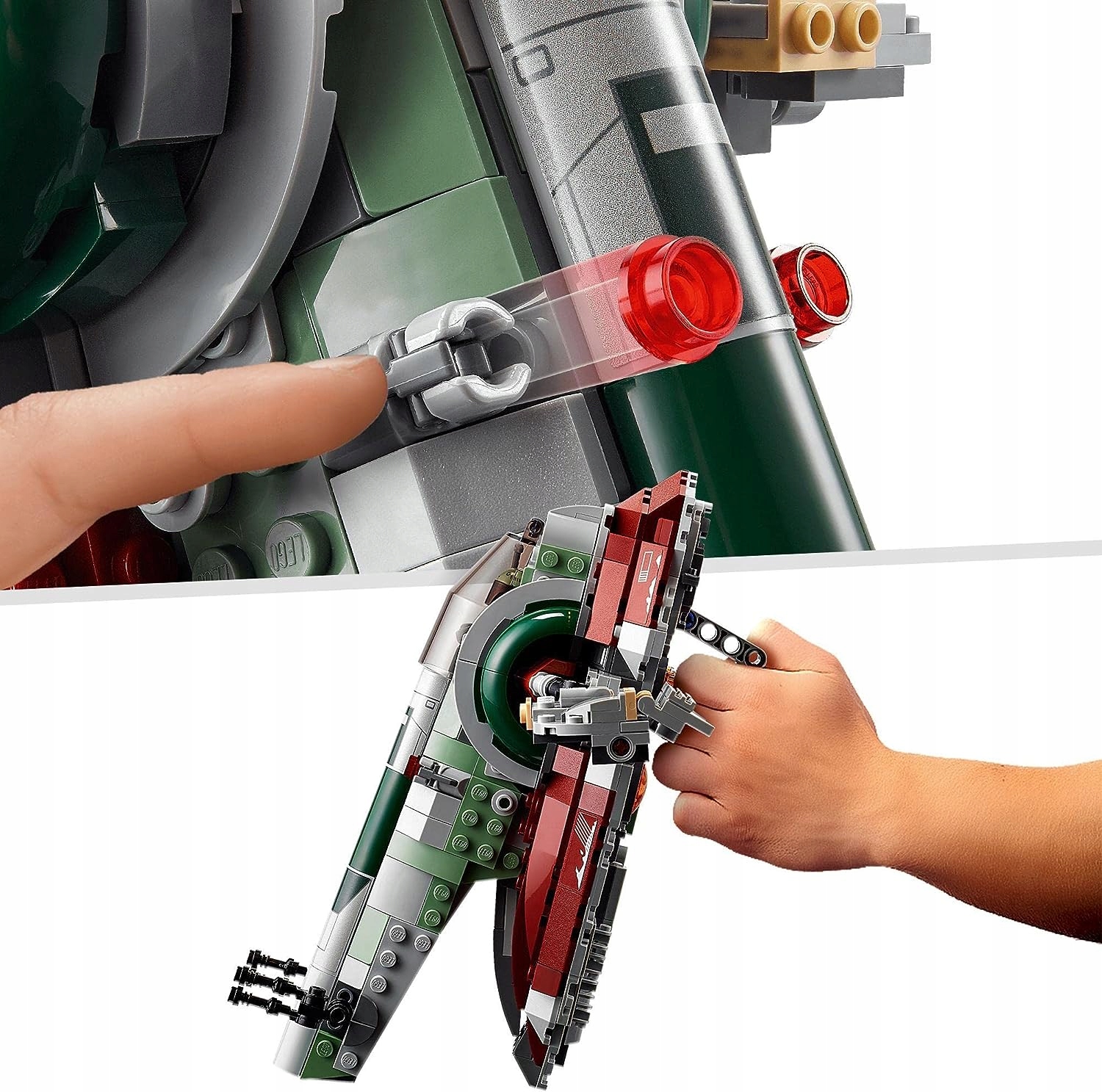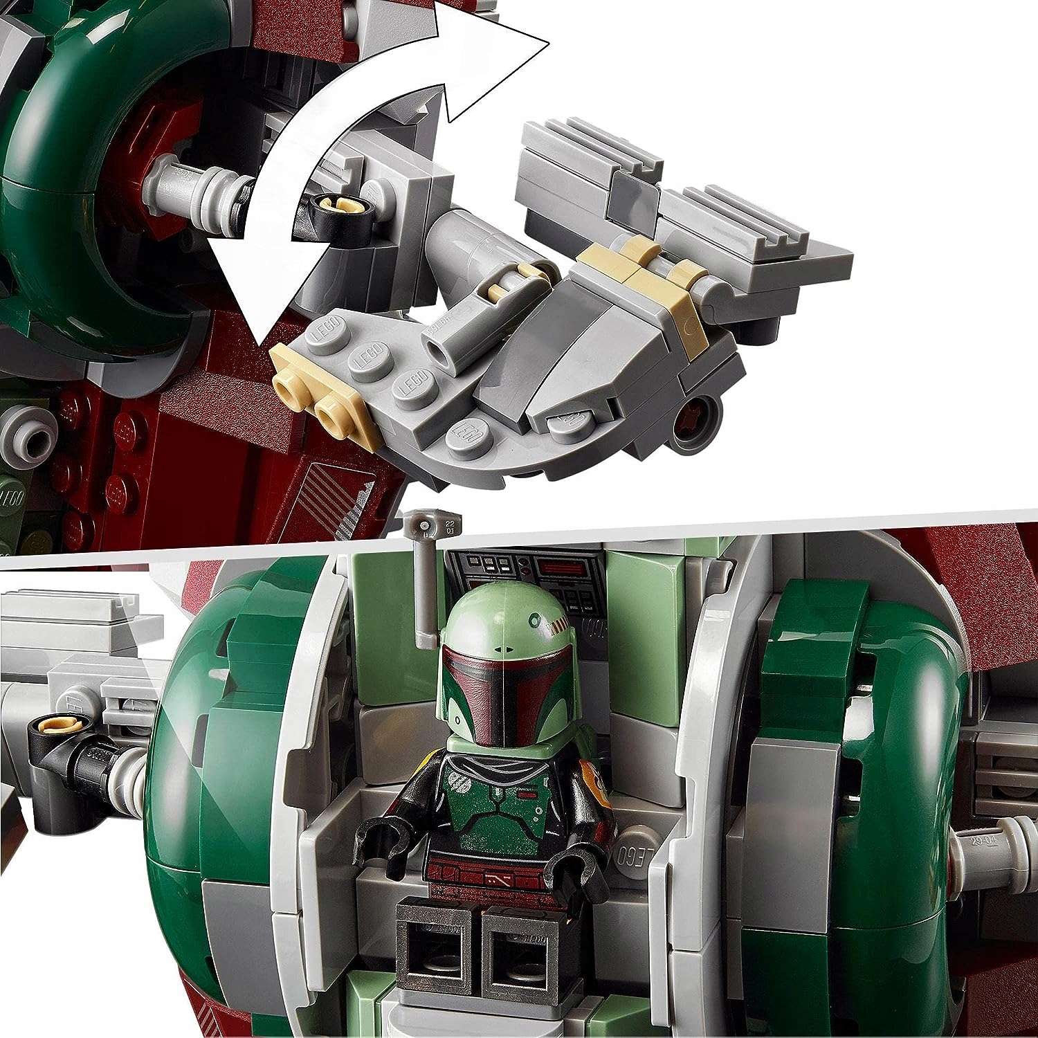 Створіть культовий космічний корабель Боби Фетта та виконуйте захоплюючі місії з Мандалорцем! Стрибайте в кабіну і вирушайте шукати призи. Стріляйте по шпильках зі стад-шутера, стріляйте по цілях за допомогою обертових гармат, оснащених подвійними бластерами, і заморожуйте свою здобич у карбоніті. Приземліться на планеті Тайтон і скористайтеся транспортером, щоб перемістити корабель (або відобразити його у вертикальному польоті).