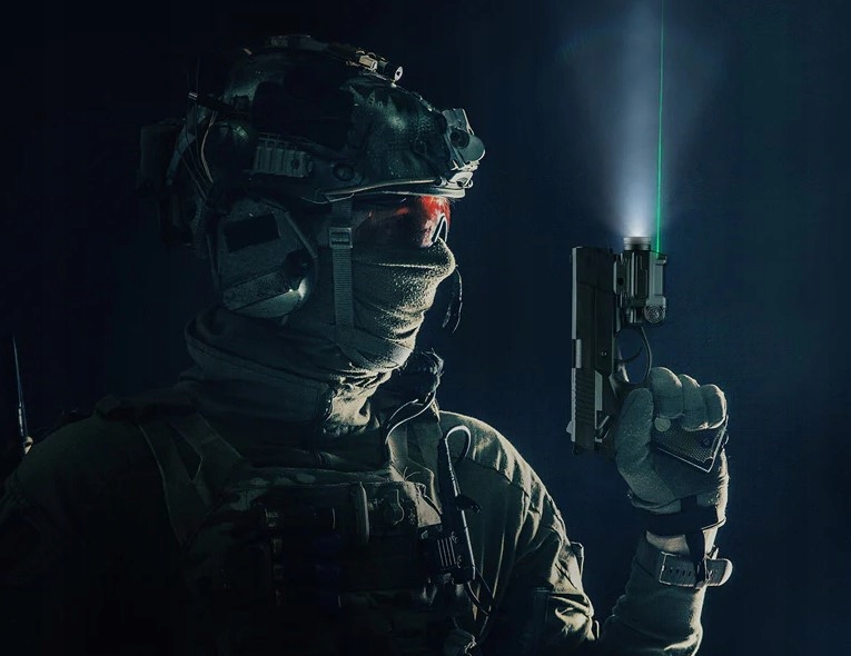 - Ліхтарик для зброї, сумісної з рейкою Glock та Picatinny.