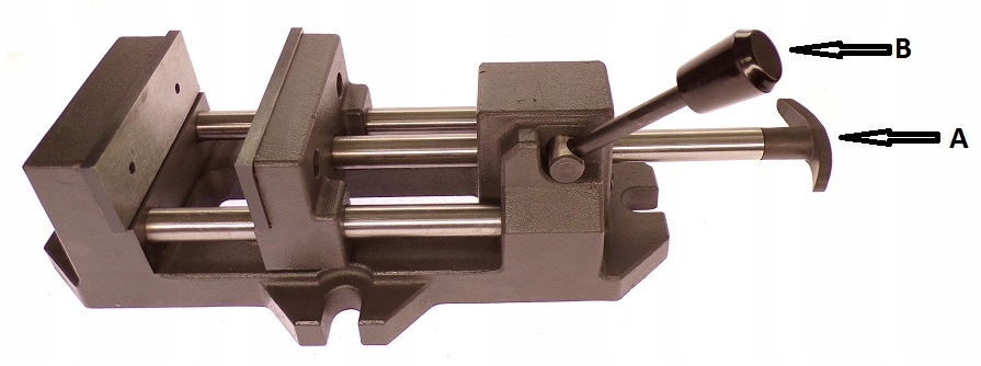 - Обладнано функцією швидкого затискання заготовки: важіль A використовується для початкового налаштування відкриття губки, а важіль B використовується для швидкого пресувати заготовку