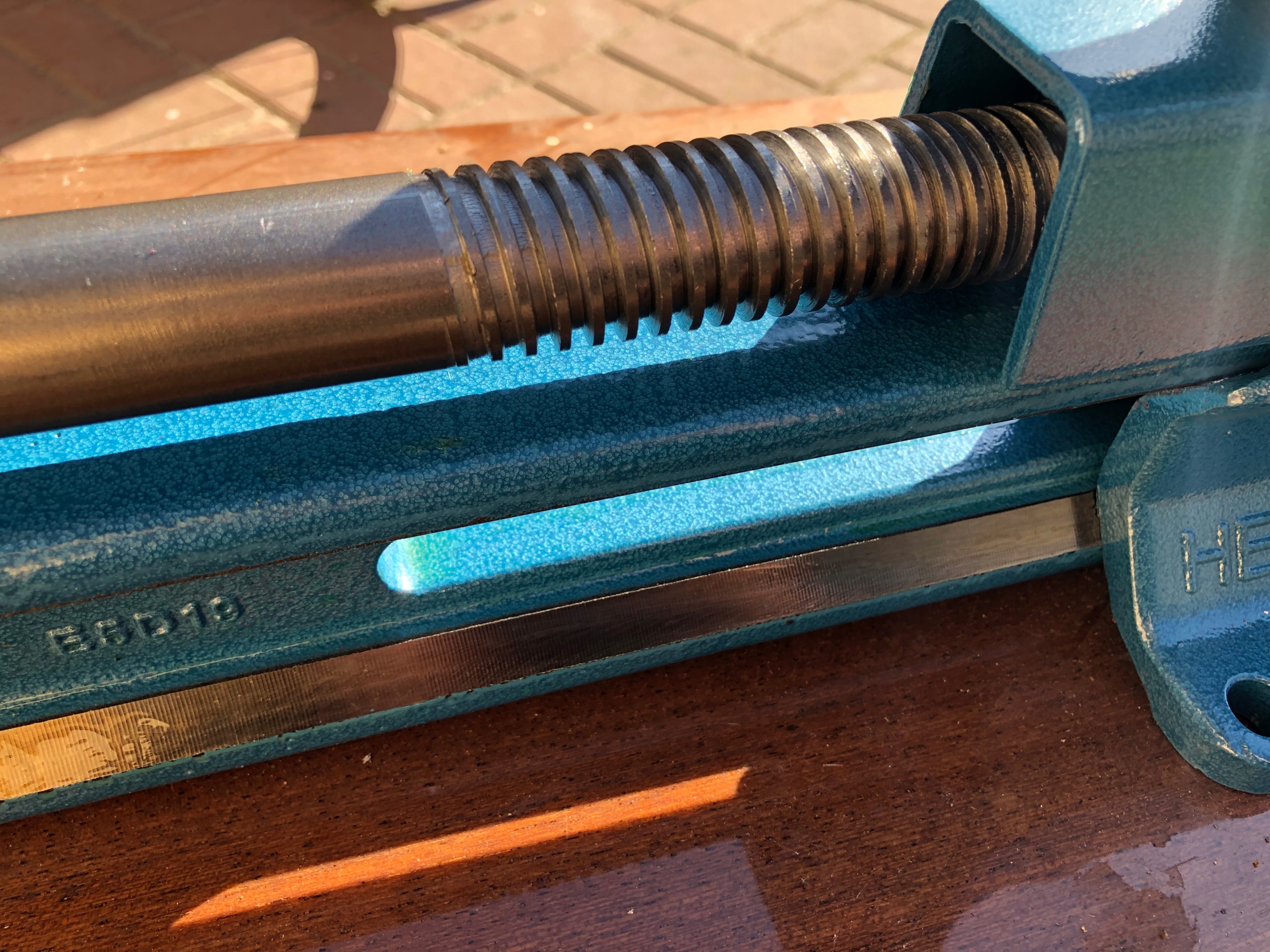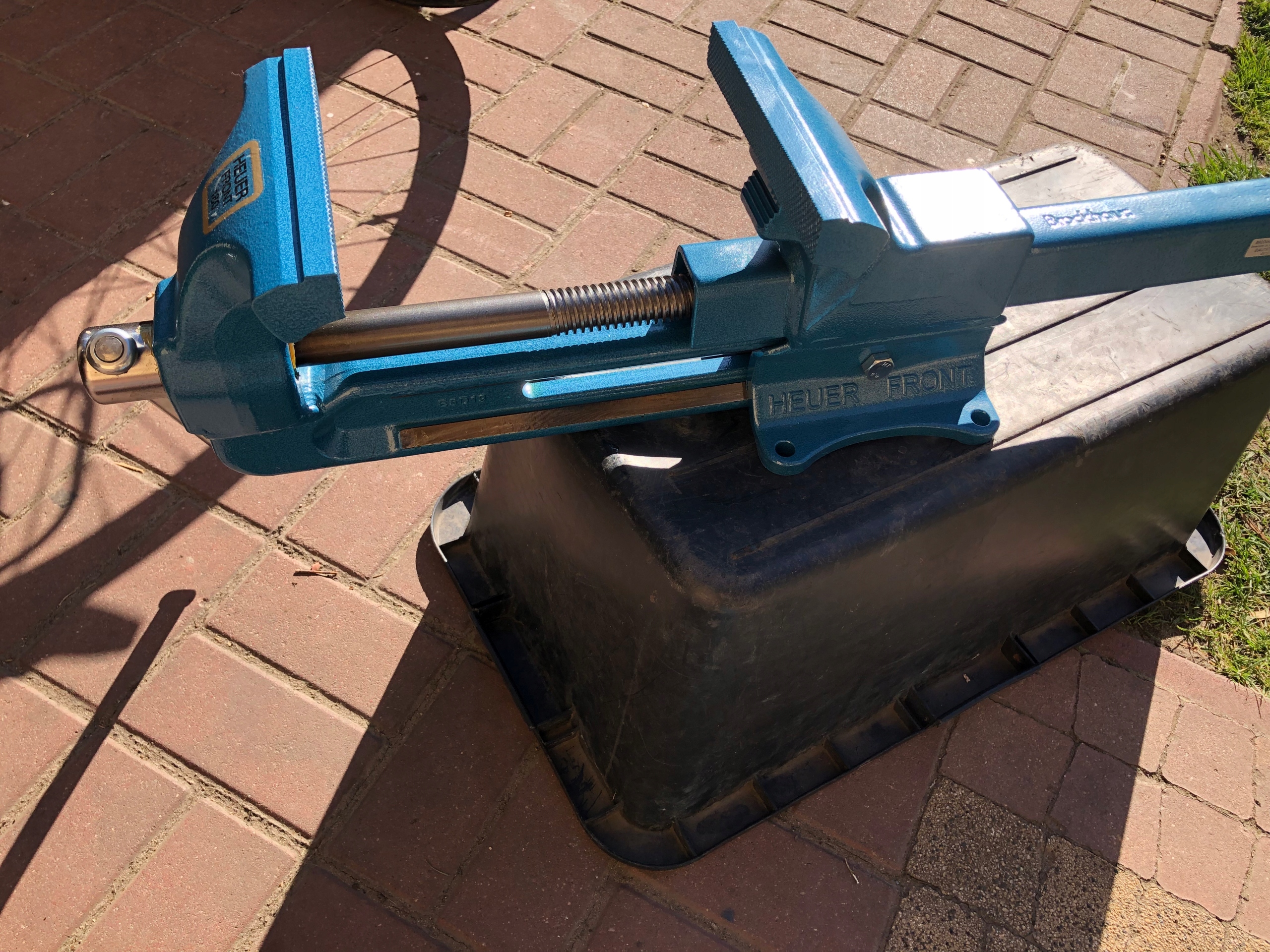 Вся сталь, кована – гарантована міцність. Відкривається вперед. Губки для затиску труб під звичайні губки. Міцний шпиндель із подвійною трапецієподібною різьбою для швидкого відкривання та закривання губок. Оцинкований гайковий ключ зі сталевими заклепками. Шпиндель і напрямні захищені від забруднення. Регульована двостороння призматична напрямна. З посиленою ковадлом для випрямлення та висадки.