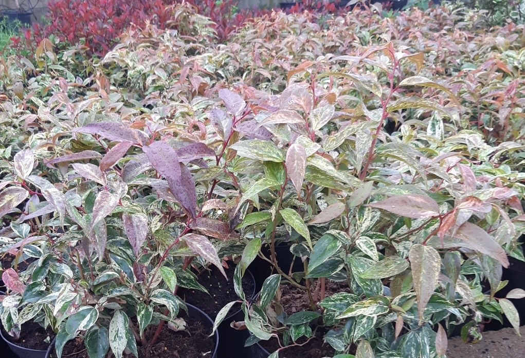- Вічнозелений чагарник з компактними, товстими пагоном, що росте до висотою приблизно 0,8-1,2 м і шириною близько 1,2 м через 10 років. Кольори веселки: Молоді листя та пагони є малино-рожевими, з кремовими, жовтими та рожевими знебарвленнями, які з часом переходять у світло-зелений.