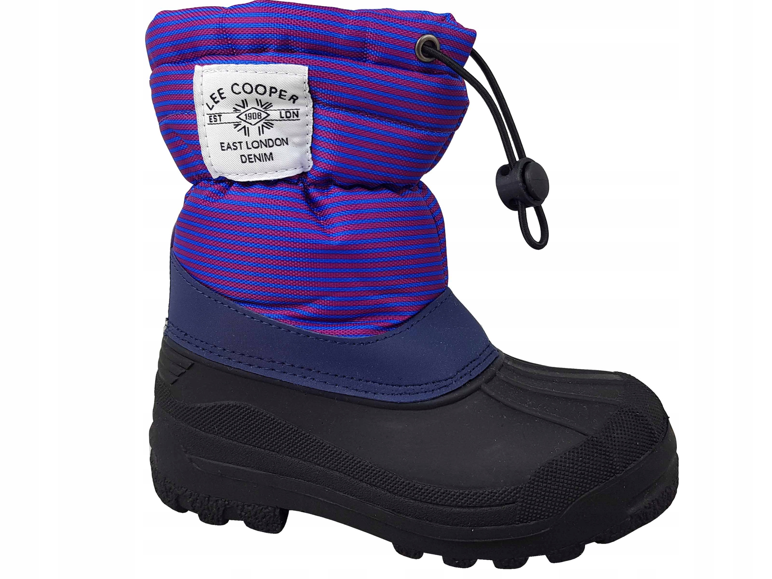 дитячі снігові черевики Лі Купер - ідеальне рішення для наймолодших у холодні дні. Нижня частина черевиків виготовлена з гуми. ізольована вставка з м'якою і приємною текстурою ідеально ізолюється від холоду та вологи. Взуття було утеплено теплим флісом.