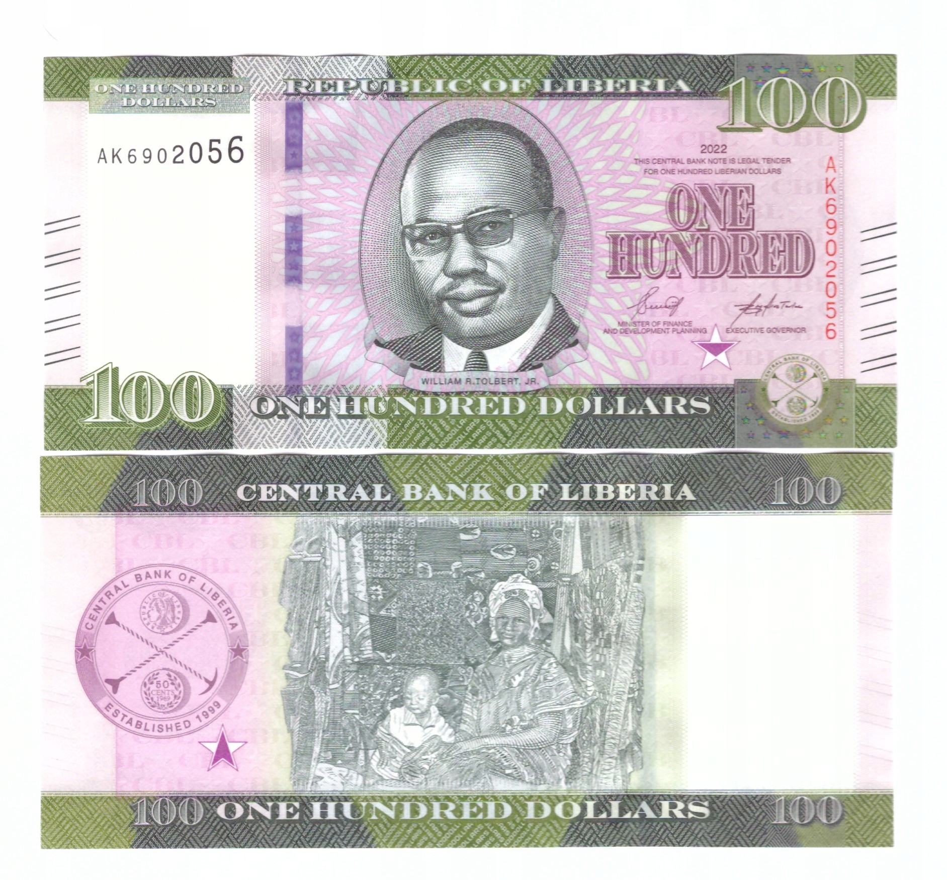 ЛІБЕРІЯ 100 ДОЛАРІВ 2022 P-W41 UNC ОСТАННЄ ВИДАННЯ НОВИЙ БЕЗПЕЧНИЙ ПАРТІЙ