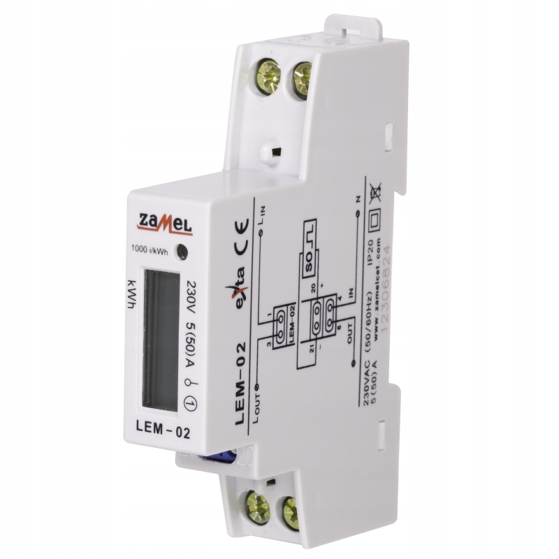 ЛІЧИЛЬНИК ЕЛЕКТРОЕНЕРГІЇ ZAMEL EXTA 1-ФАЗНИЙ LCD ТИП: LEM-02