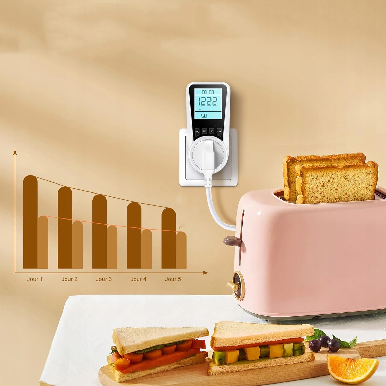 ЛІЧИЛЬНИК ПОТУЖНОСТІ НА РОЗЕТКУ З 7 РЕЖИМАМИ МОНІТОРИНГУ, LCD ДИСПЛЕЙ