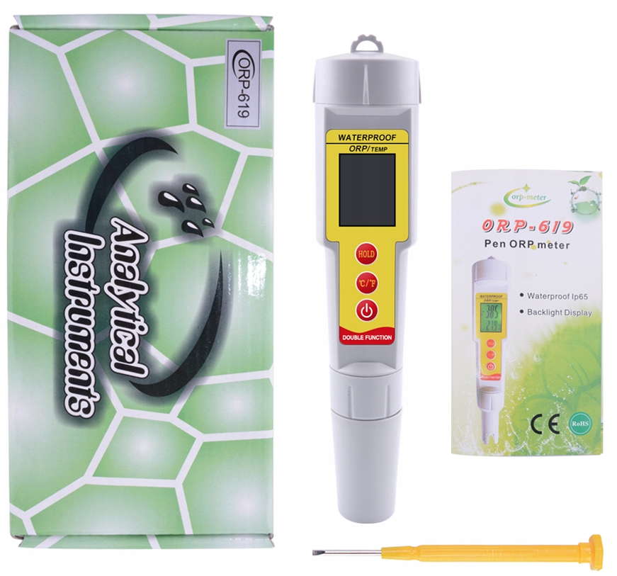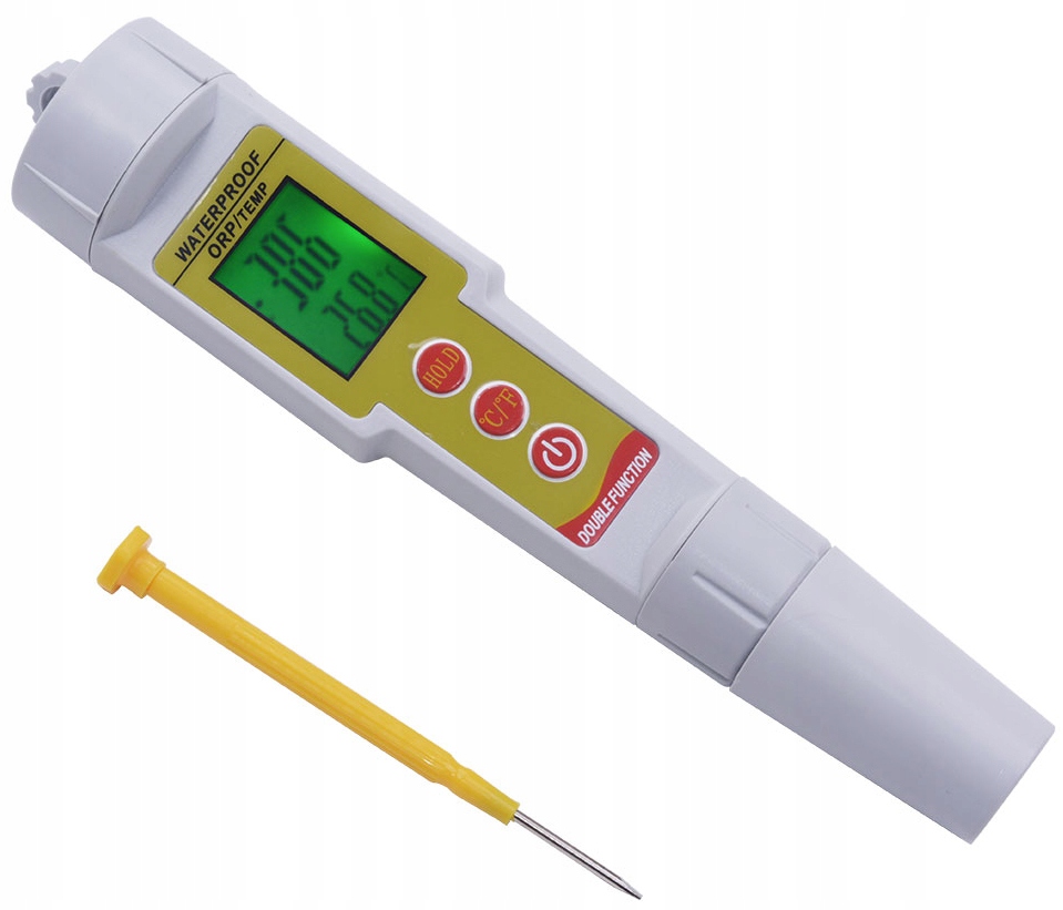 Лічильник ORP є фабричним каліброваним і не потребує повторної калібрування. [ Вимірювання ORP), втираючи його бавовняним бавовняним тампоном, просоченим в одному і тому ж очисному розчині.