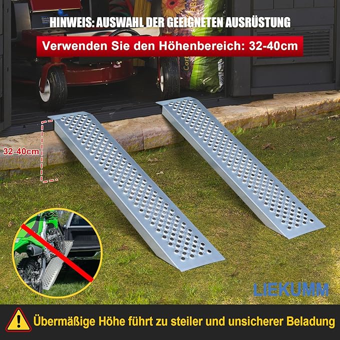 ЛІЕКУММ Пандус під'їзний 2 шт., навантажувальна рампа з отвором, вантажопідйомність 600 кг/пара, для мотоциклів, квадроциклів, вантажівок, квадроциклів, газонокосарок, снігоочисників, протиковзка, водонепроникна, нержавіюча,