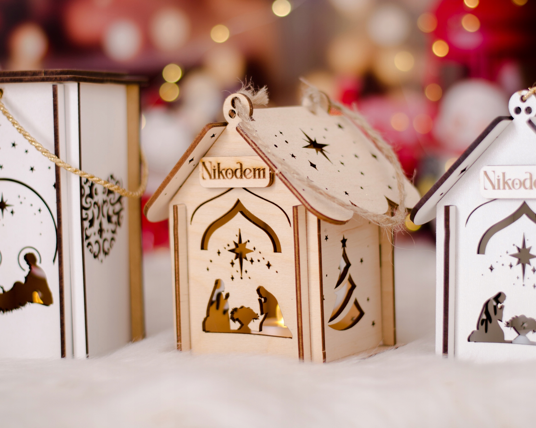 На стінах є вирізані новорічні імітації, які ідеально розсіюють світло. Ліхтар чудово виглядає в темряві, завдяки теплому світлу.