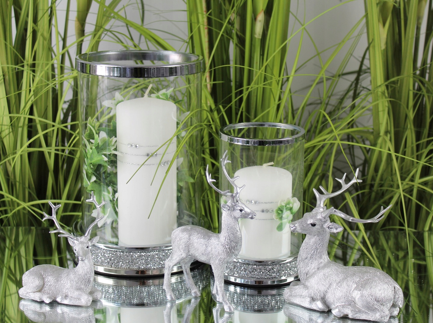Ліхтар Скляний свічник золоті олені H8 прикраса столу DEcodomi