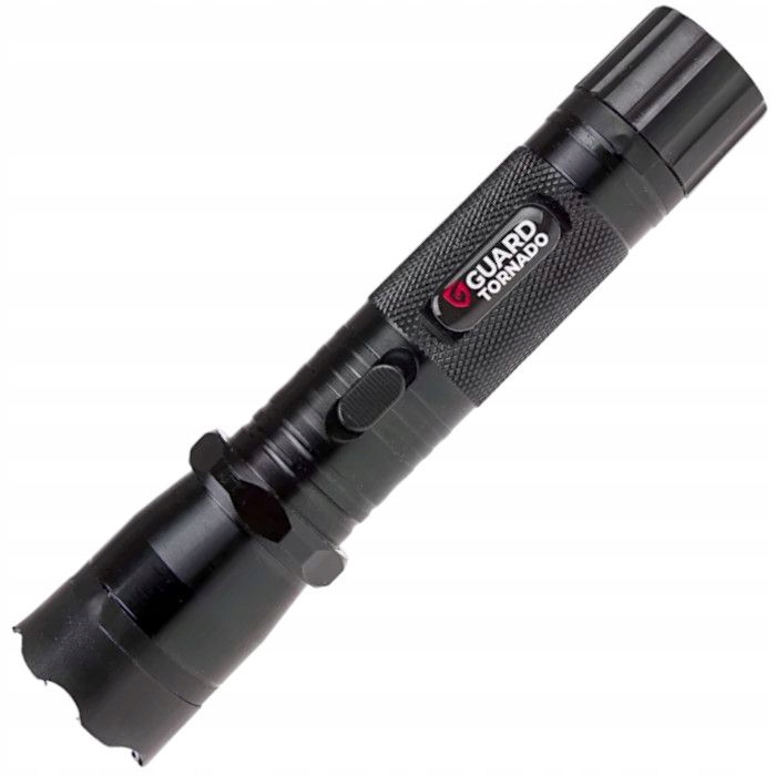 Розміри : 17x4 см, вага 240 г. Матеріал: алюмінієвий сплав, стійкий до ударів і погоди. Заряджання : червоний світлодіод вказує на процес заряджання. Завдяки своїй багатофункціональності GUARD Tornado буде одночасно ефективним інструментом захисту та практичним ліхтариком для щоденного використання. У набір також входить футляр із кріпленням на ремінь, зарядний пристрій та інструкція польською мовою.