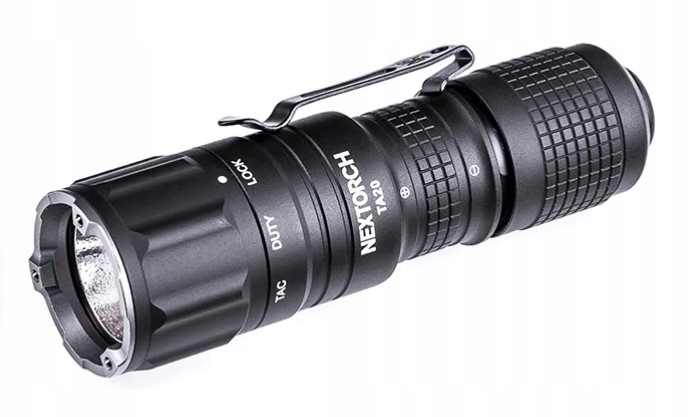 Ліхтарик NEXTORCH TA20 компактний і зручний, що дозволяє тримати його та керувати ним однією рукою. Він має потужний світлодіод OSRAM P9, який генерує яскраве світло з максимальною потужністю 1000 люмен. Виготовлений з міцного алюмінієвого сплаву. Він має затиск, який дозволяє прикріпити його до одягу або рюкзака, і ручку, яка дозволяє міцно схопити та висунути ліхтарик, наприклад, із кишені. Водонепроникний і ударостійкий корпус має сертифікат IPX8. Завдяки своїй конструкції його можна використовувати як склобій.