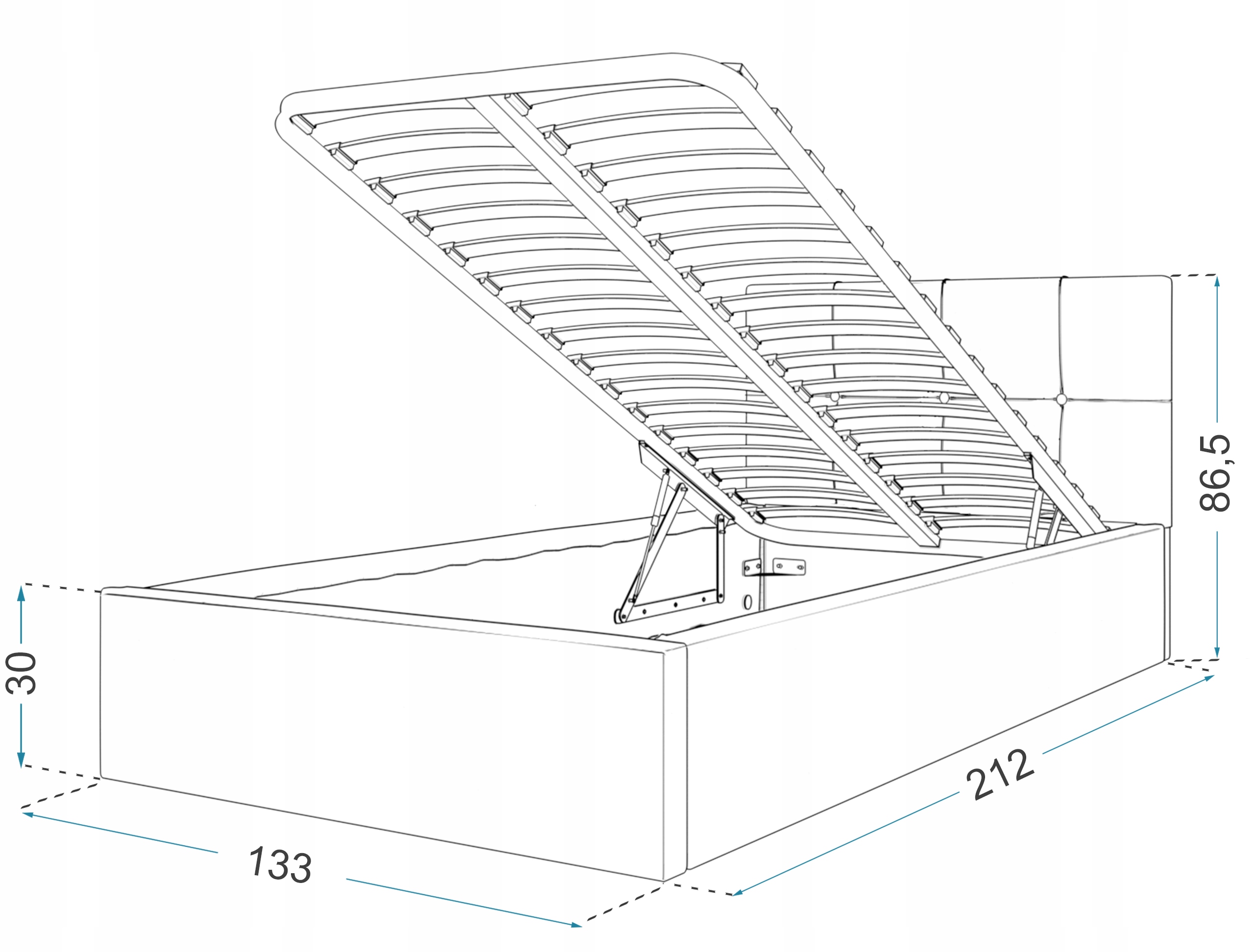 - Металевий каркас + 34 пружинні планки. Піднімається на «автоматах». Підйомний механізм підтримується двома газовими балонами.