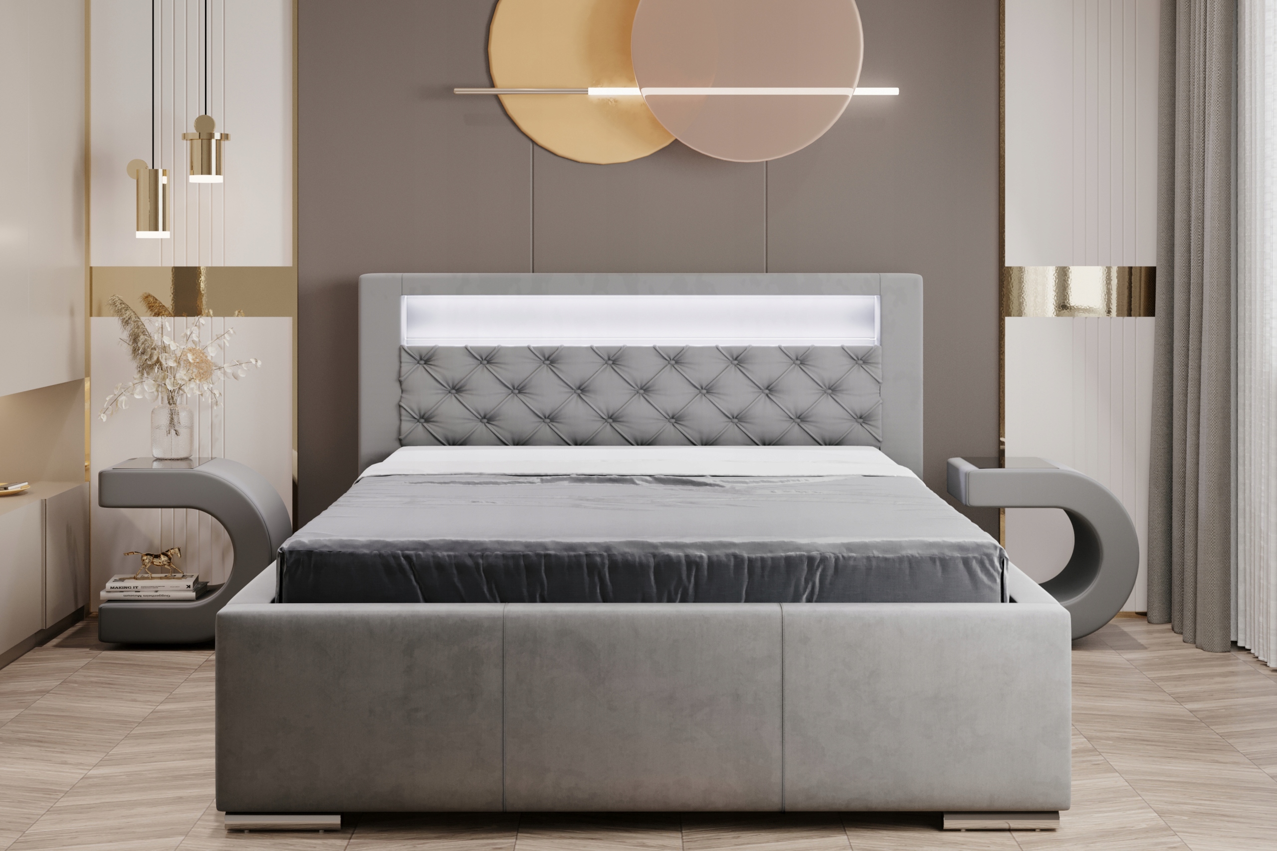 Ліжко TUNIS 160x200 LED з м’якою оббивкою на дерев’яному каркасі: