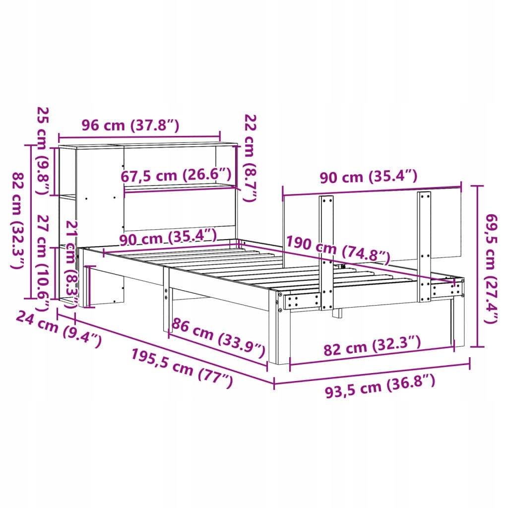 - Розміри відповідного матраца: 90 x 190 см (Ш x Д); матрац не входить