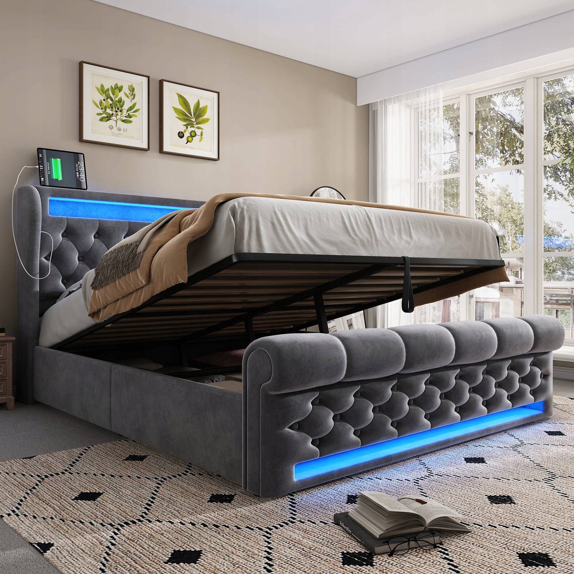 - Інноваційна обертова світлодіодна стрічка: світлодіодні стрічки, інтегровані в узголів’я та ноги ліжка, підтримують таймери та різні режими динамічного освітлення. Ви можете вибрати з понад 60 000 кольорів світла за допомогою програми або пульта дистанційного керування, і вогні можуть навіть блимати в такт музиці. Світлодіодна стрічка ідеально поєднує функцію освітлення зі стильним зовнішнім виглядом. Вам більше не доведеться турбуватися про свою безпеку, прокидаючись посеред ночі.