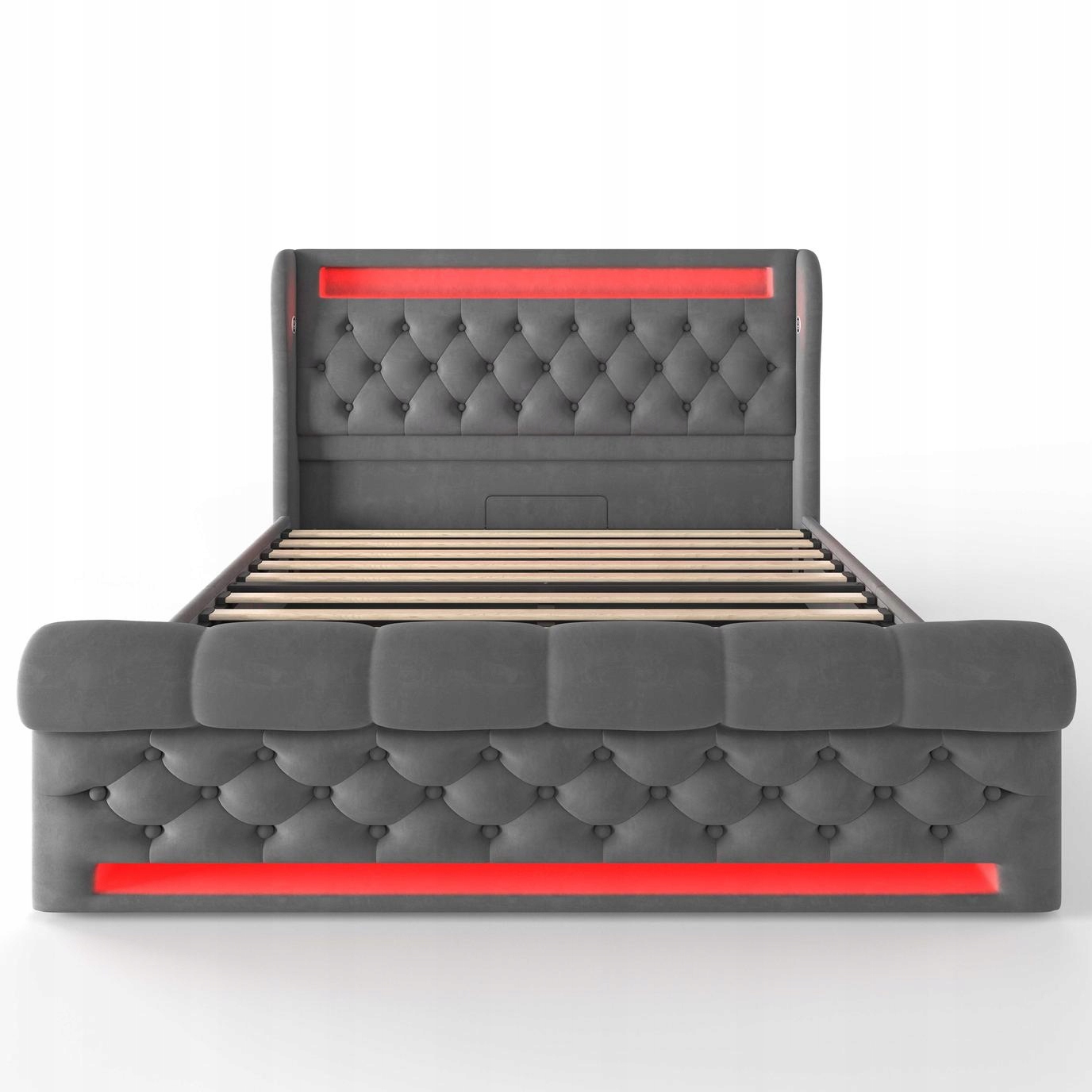 Ліжко з м'якою тканиною Ліжко односпальне USB Type C LED ліжко 160х200 см сірий