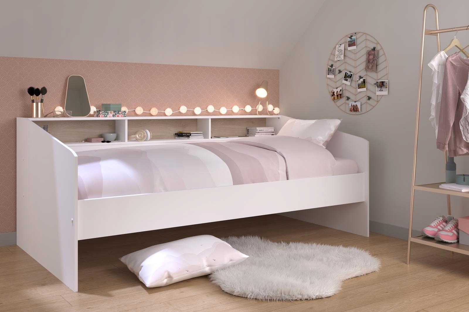 оригінальні та практичні ліжка з унікальним стилем та розмальовками, насолоджуючись великим інтересом клієнтів та задоволенням тих, хто їх вже придбав. Ліжка високої якості, що відповідають розташуванню окремих приміщень для спальні, а також щоденних кімнат гарантують зручність та міцну продуктивність. Представлене ліжко з колекції сну - це ліжко, виготовлене в модному білому кольорі, оснащеному поличками та просторими ящиками. Розміри: