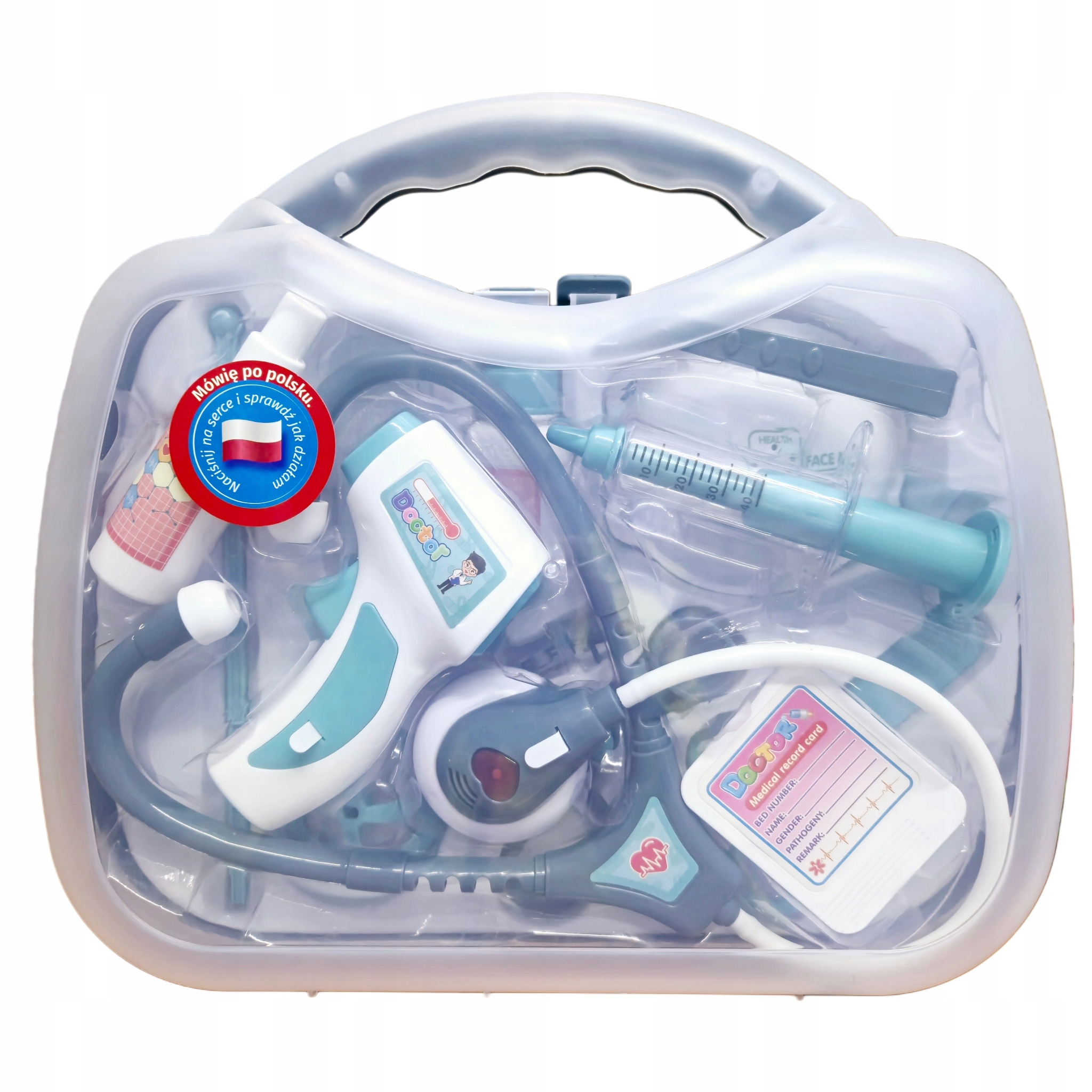 Набір упакований у практичну валізу, ідеально підходить для подорожі або відвідування сім'ї . Завдяки цьому кожен маленький лікар буде готовий до дії, і весело, повна творчих викликів та радості.